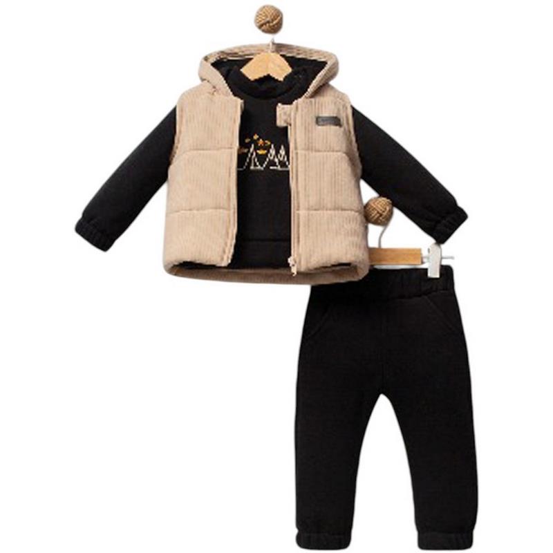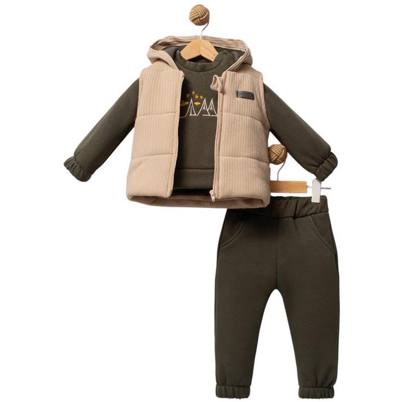 5225 toptan 6-9-12 aylık erkek bebekler için kışlık yelekli üçlü takımlar