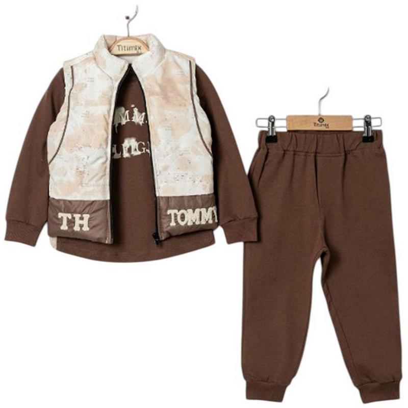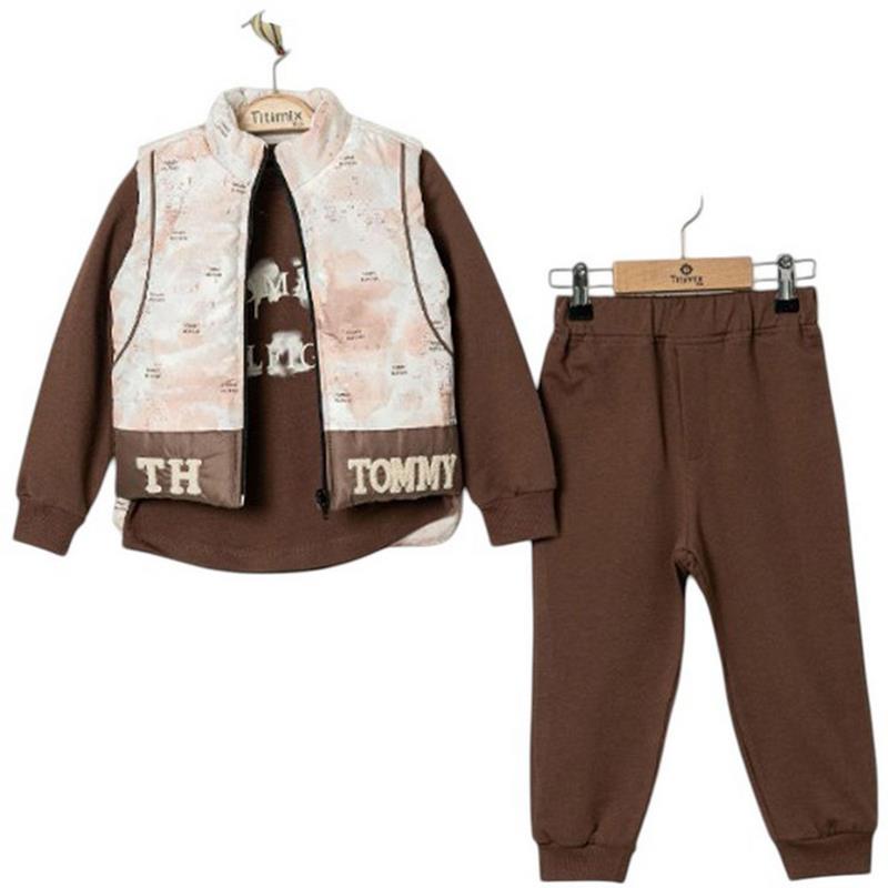 5227 toptan 6-9-12 aylık erkek bebekler için yelekli kışlık üçlü takım elbise