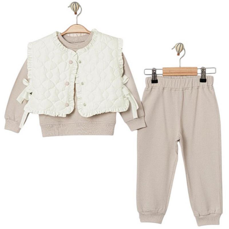 25104 toptan 9/24 aylık kız bebekler için mevsimlik yelekli üçlü takımlar