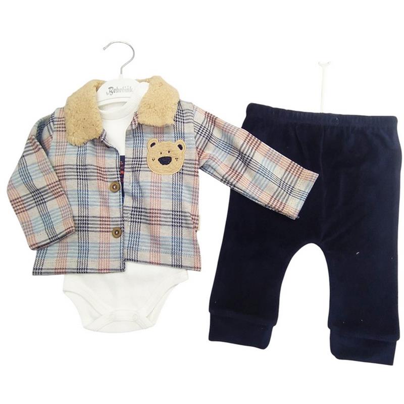 791 toptan 6-12-18 aylık erkek bebekler için mevsimlik üçlü çocuk takımları