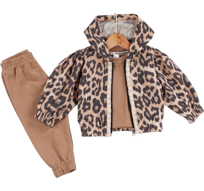 40829 leopar baskı kapşonlu kız bebek kıyafeti toptan 6/24 ay