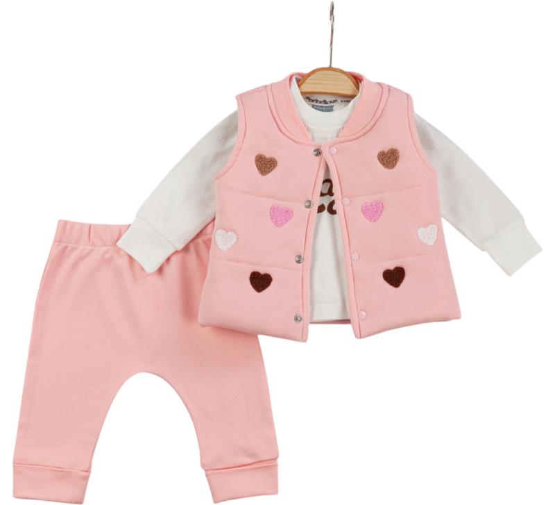 1096 kız bebek kıyafetleri kalp desenli toptan satış 3-6-9 ay