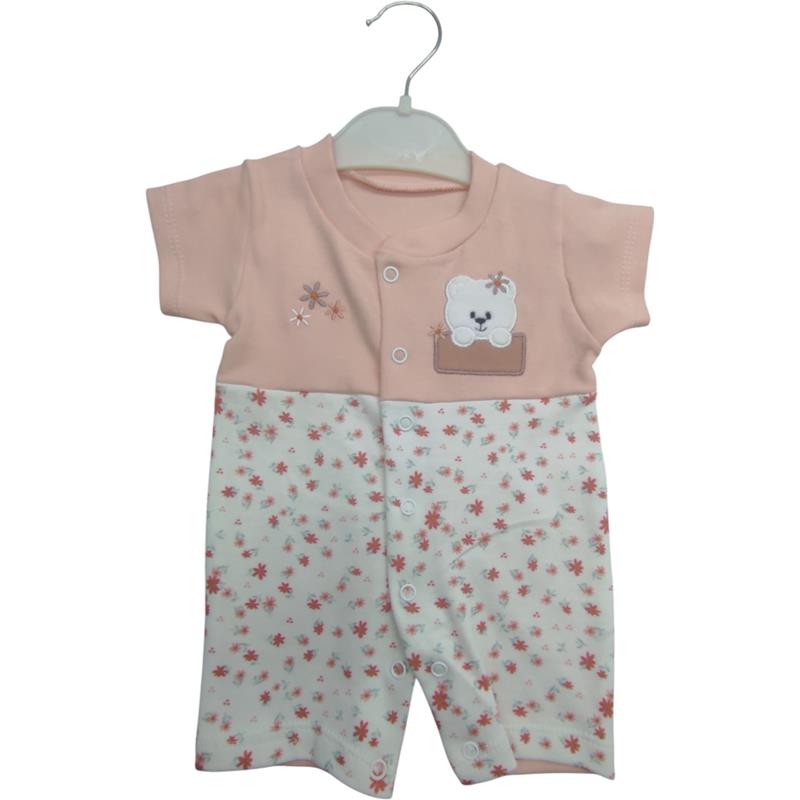1154 toptan 3-6-9 aylık bebekler için çiçek nakışlı yazlık tulum