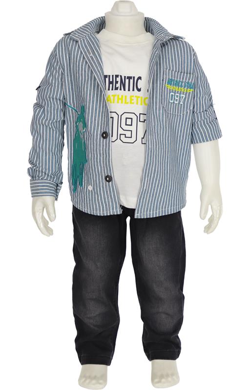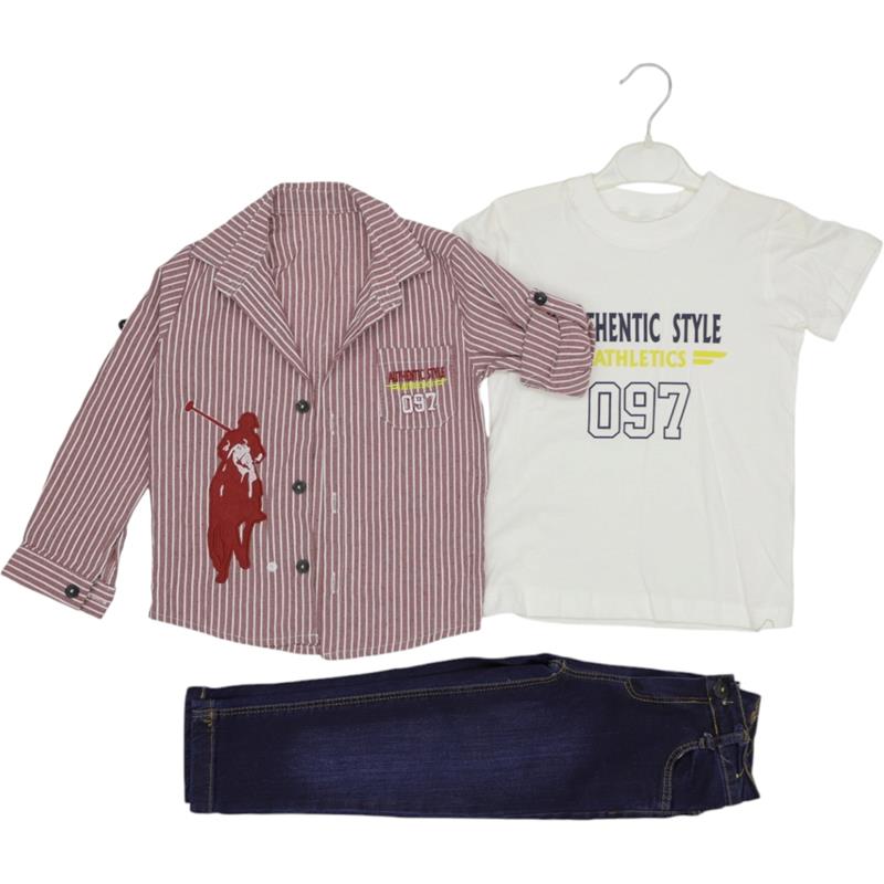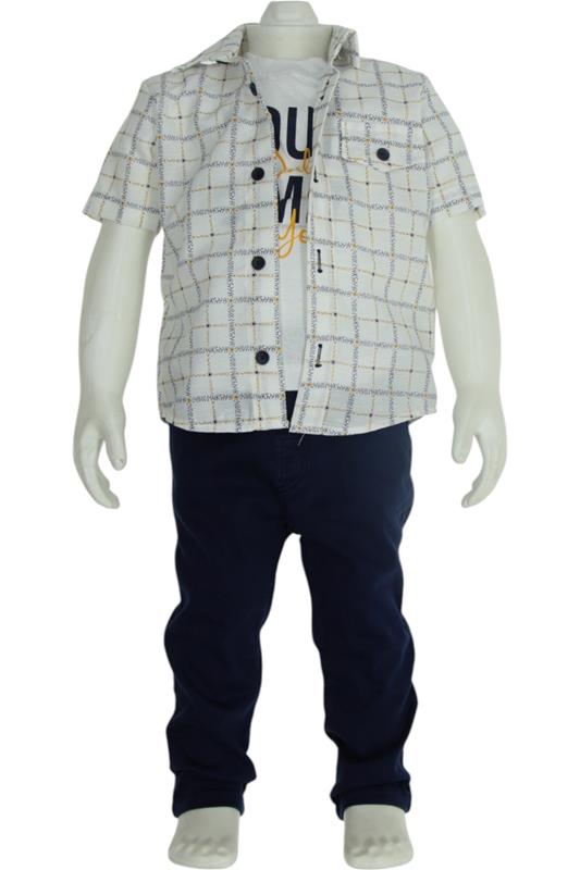 2941 toptan 2-3-4-5 yaş erkek çocuklar için mevsimlik tişört,gömlek ve pantolonlu üçlü takım