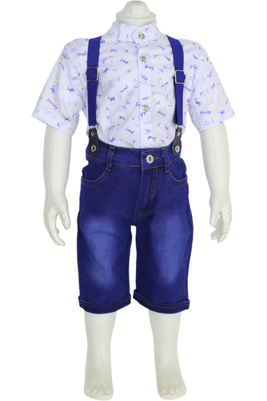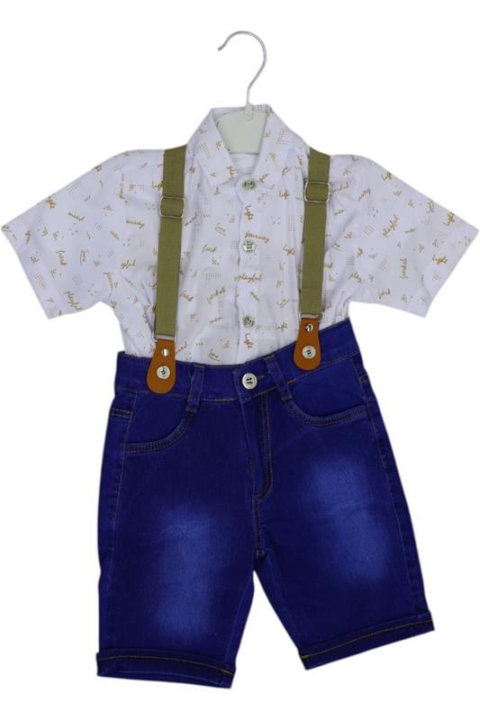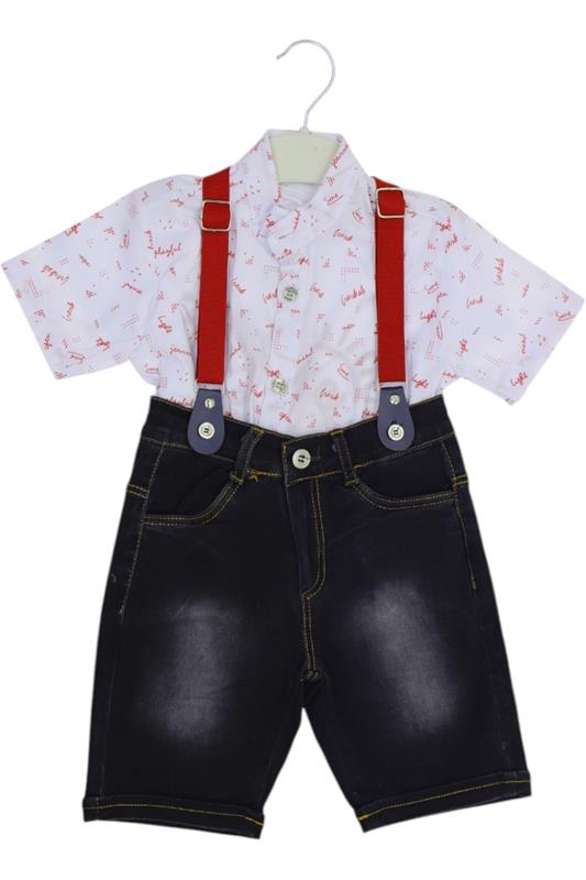 2893 toptan 2-3-4-5 yaş arası erkek çocuklar için yazlık üçlü tişörtlü ve kot şortlu gömlekli takım