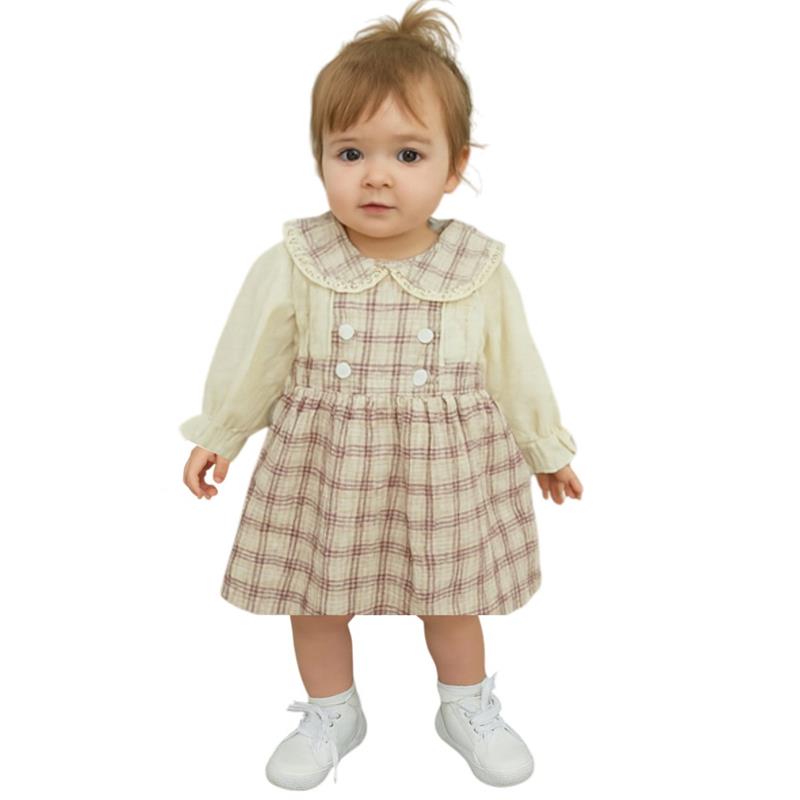 4141 toptan 9/24 ay kız çocuklar için mevsimlik ekose elbiseler