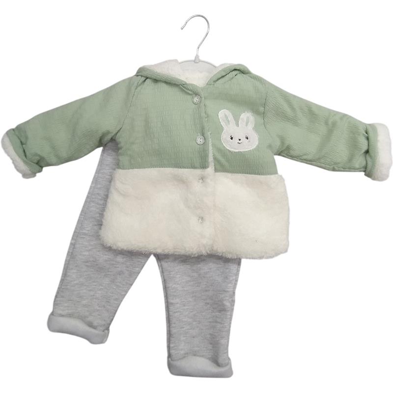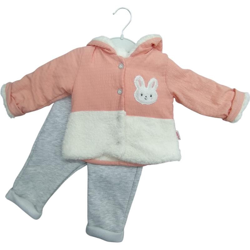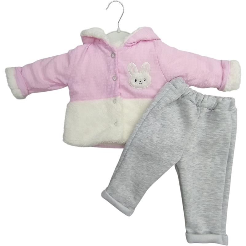 919 toptan 9-12-18 aylık kız çocukları için tavşan nakışlı ikili kışlık takım