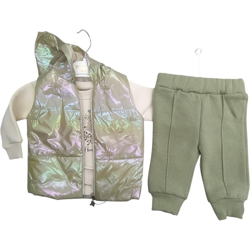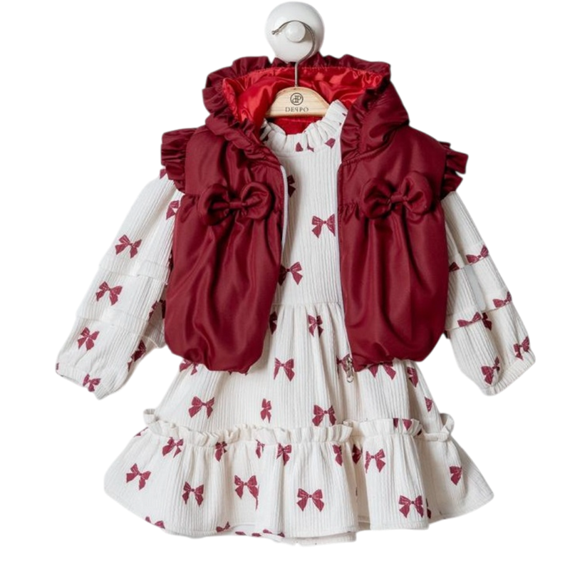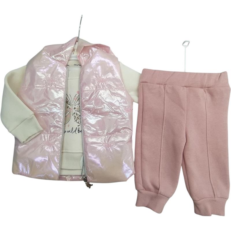 1164 toptan 9/24 aylık kız çocuklar için yelekli üç parçalı mevsimlik takım elbise
