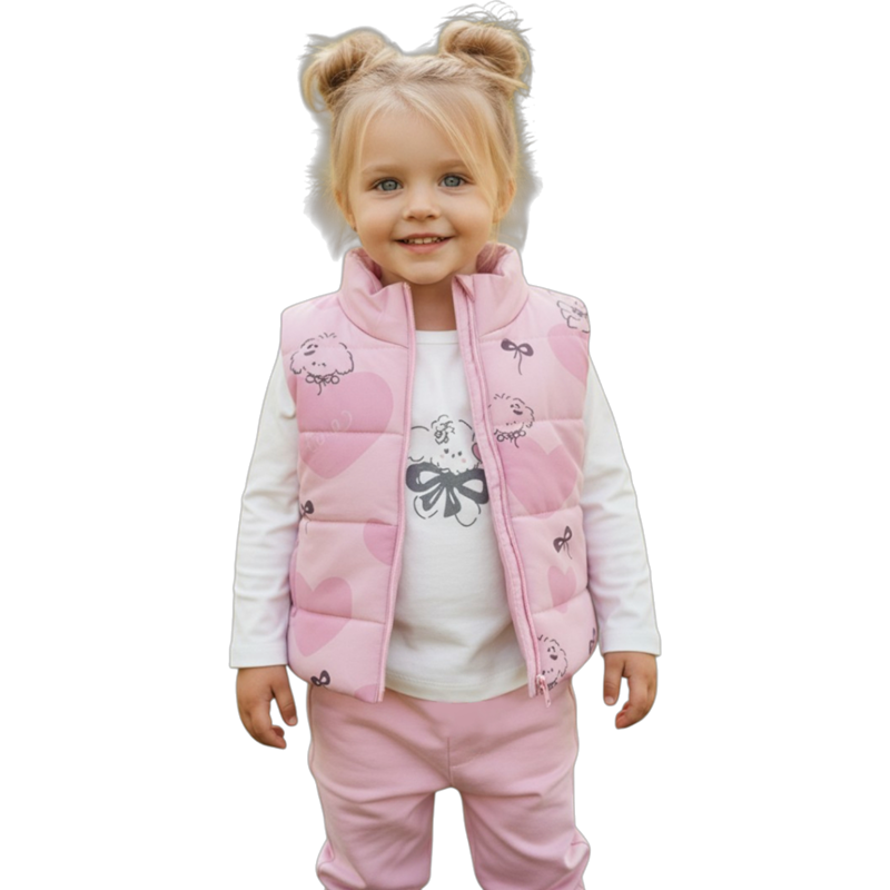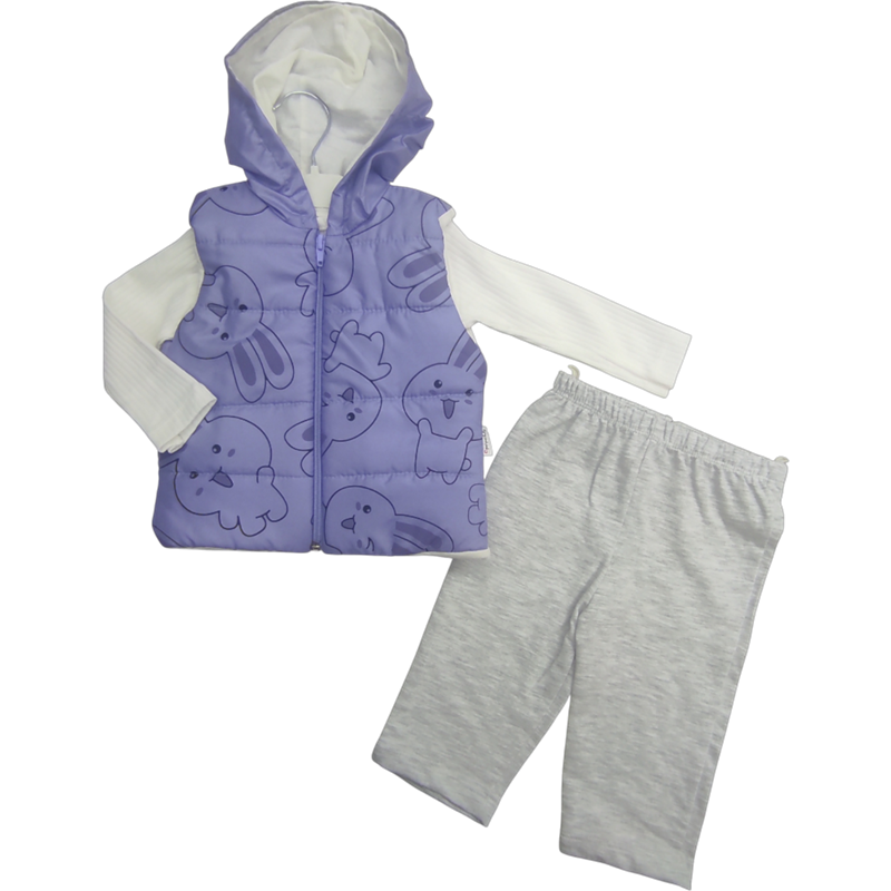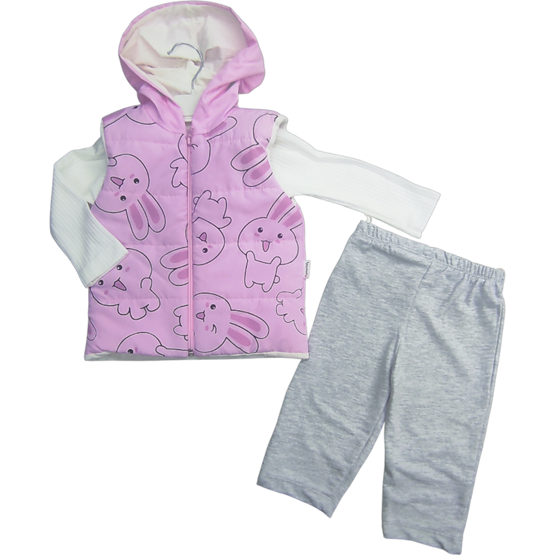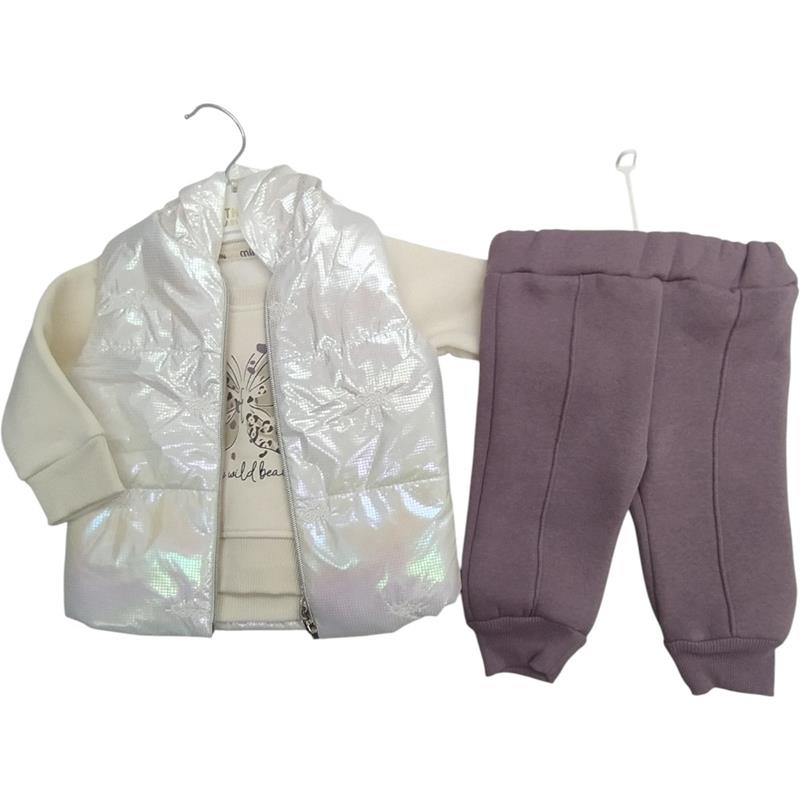 4154 toptan 9/24 ay kız çocuklar için kapüşonlu yelekli mevsimlik üç parçalı takım elbise