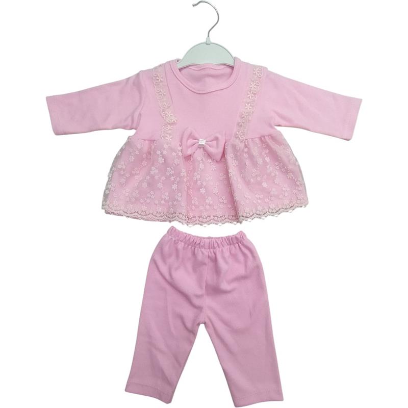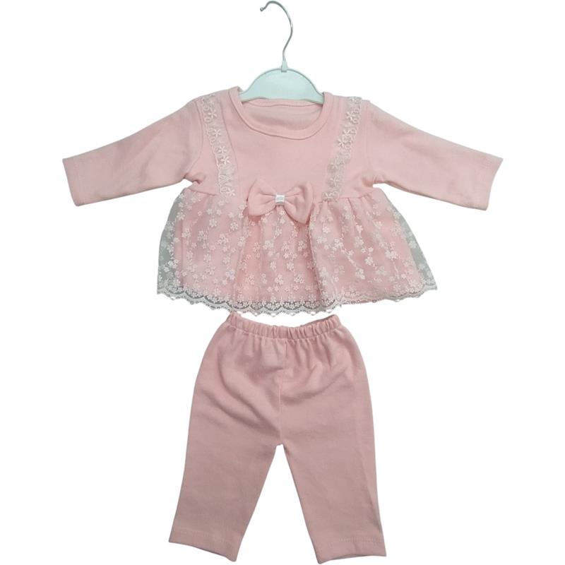 toptan 6-9-12 aylık kızlar için çocuk mevsimlik iki parçalı fiyonklu takım elbise