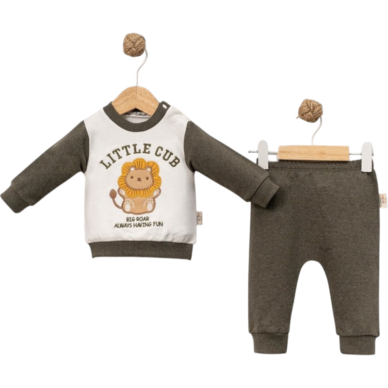 7024 toptan 6/18 ay erkek bebekler için minik aslan baskılı mevsimlik iki parçalı takım elbise