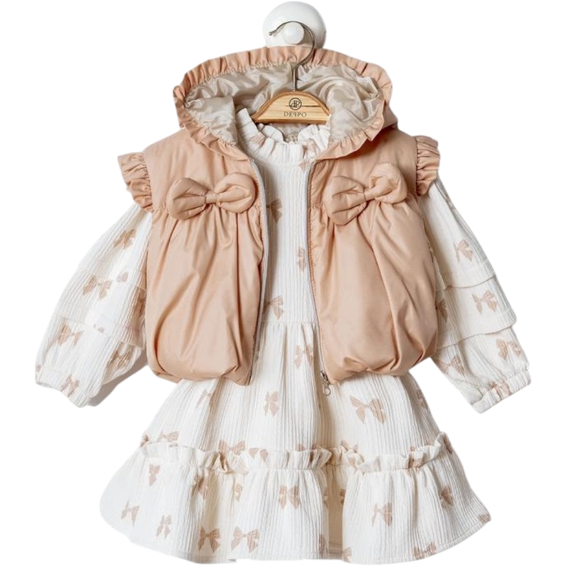 26311 toptan 9-24 ay kız çocuklar için yelekli mevsimlik elbiseler