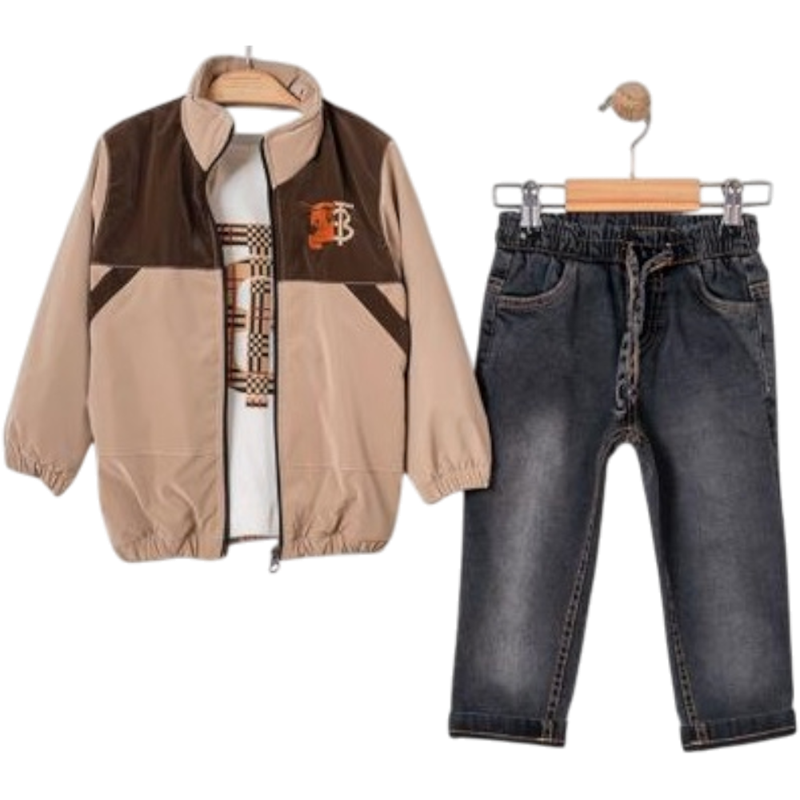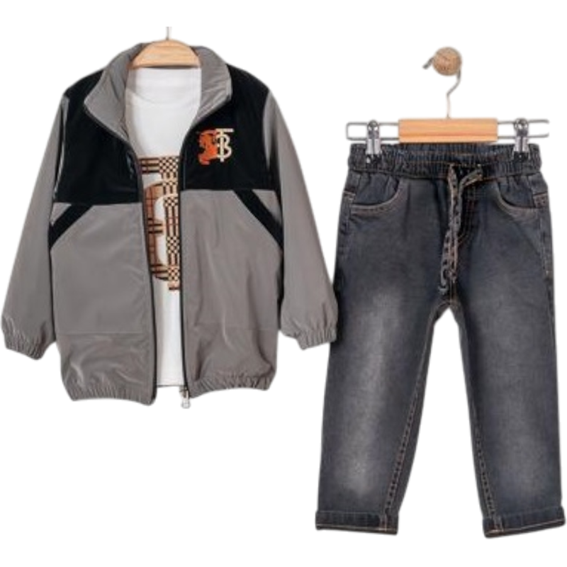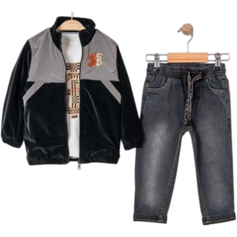 6027 toptan 9/24 aylık erkek çocuklar için üç parçalı kot pantolonlu takımlar mevsimlik takım elbise