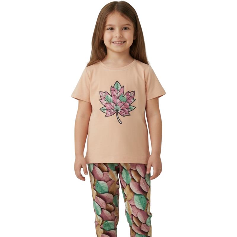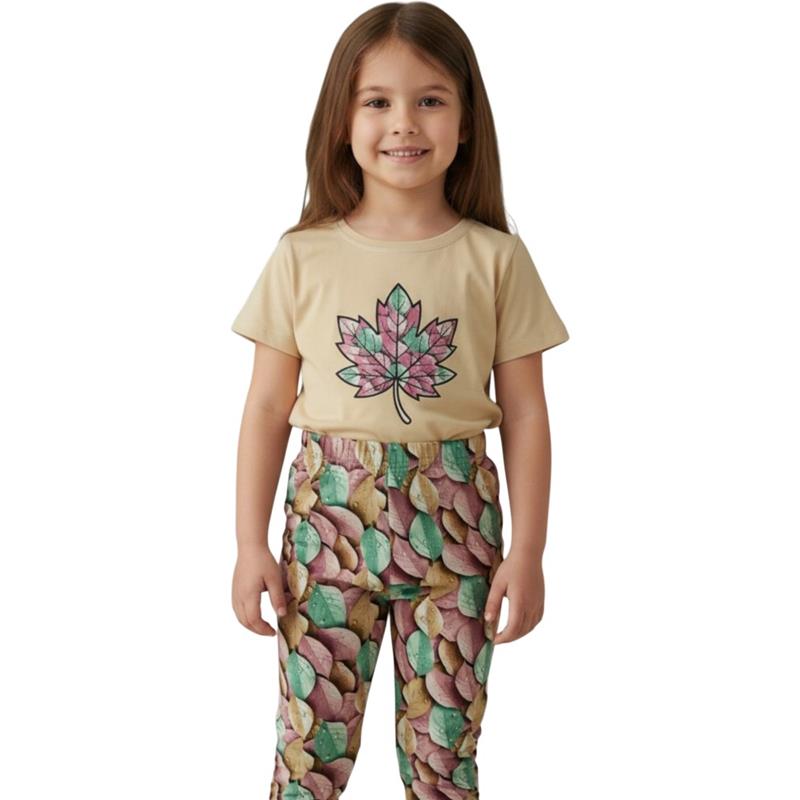 80220 toptan 2-9 yaş arası kız çocukları için tişört ve tayt dan oluşan iki parçalı yazlık takım