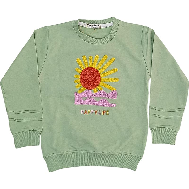 12003 Be Happy baskılı kız çocuk sweat toptan 5-8 yaş