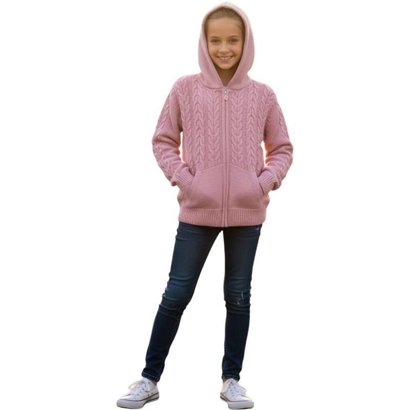 toptan 9-10-11-12 yaş arası kız çocuklar için kapüşonlu mevsimlik triko hırka
