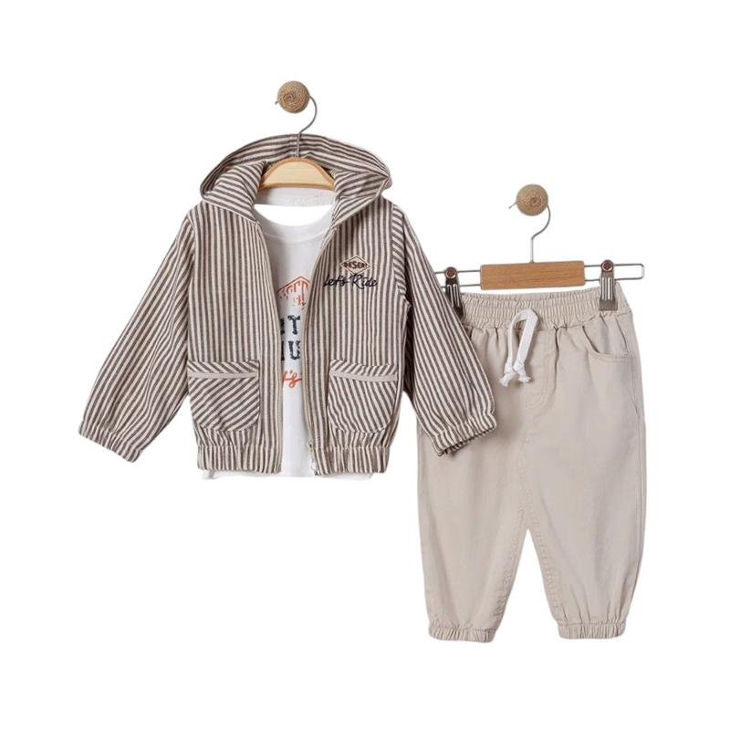 6060 toptan 9/24 aylık erkek bebekler için mevsimlik tişörtlü çizgili üçlü takım
