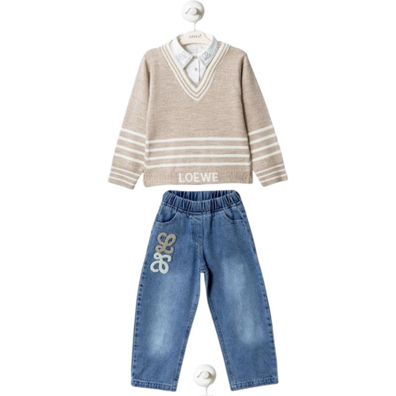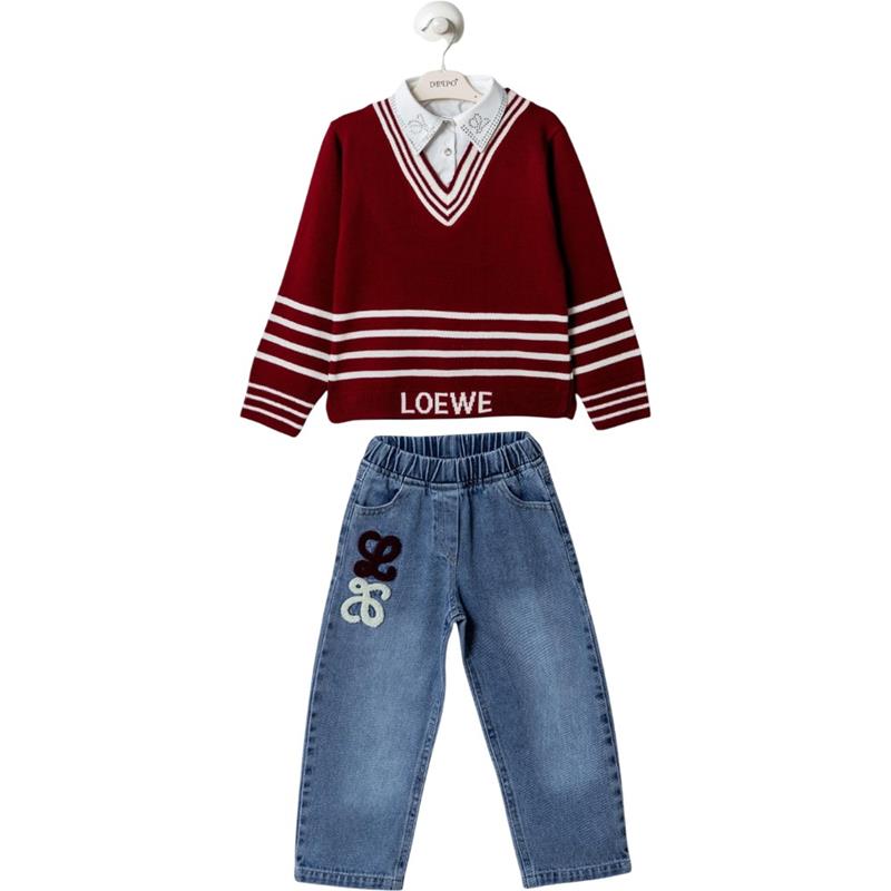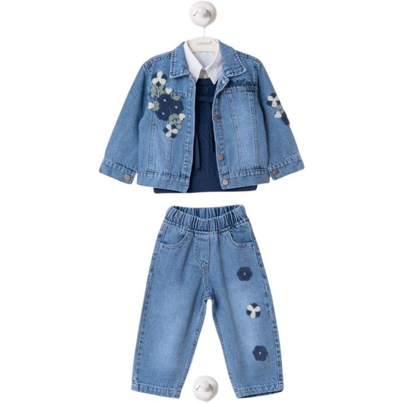 26327 toptan 5/8 yaş arası kız çocuklar için gömlekli,triko kazaklı mevsimlik dört parçalı kot takım elbise