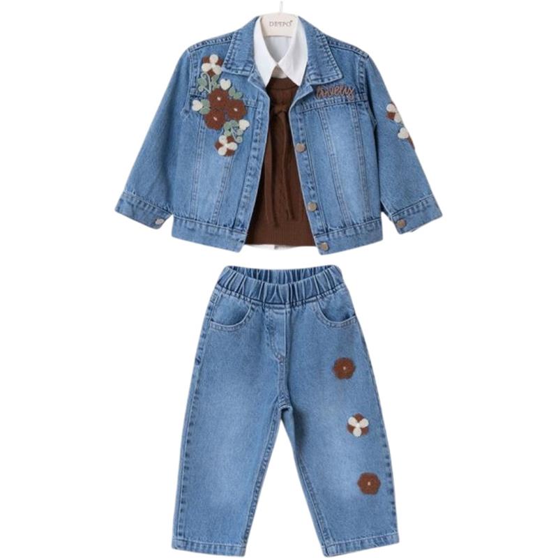 26333 toptan 5/8 yaş kız çocukları için kot pantolonlu mevsimlik üç parçalı çocuk takım elbiseleri
