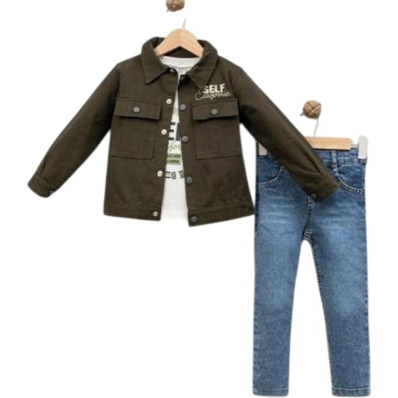 2501 toptan 1/3 yaş erkek çocuklar için hırkalı,tişörtlü,kot pantolonlu mevsimlik üçlü takım