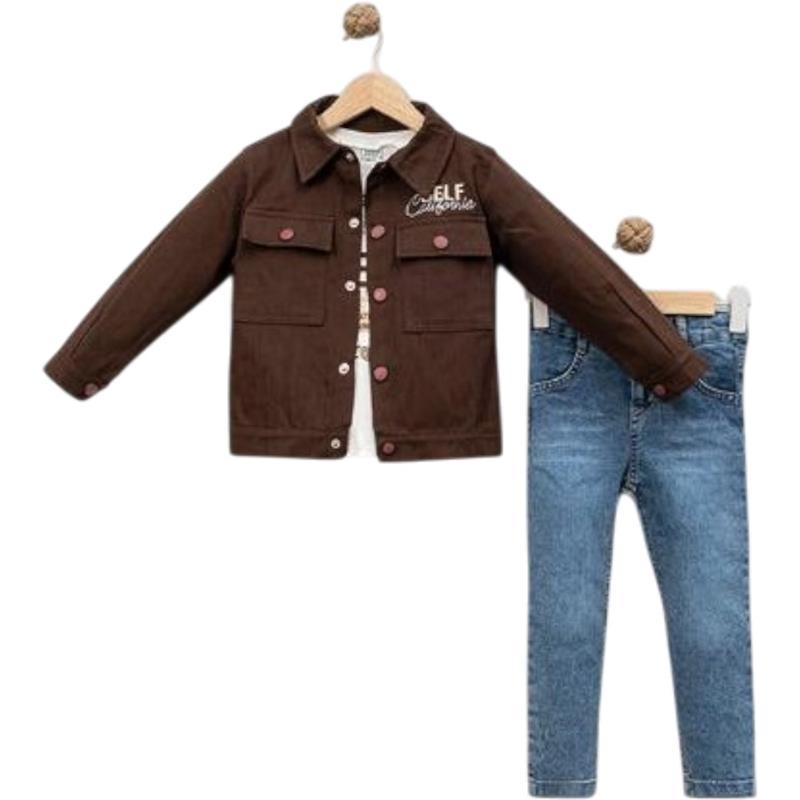 2502 toptan 4/6 yaş erkek çocuklar için gömlekli,tişörtlü ve kot pantolonlu üçlü takım elbise