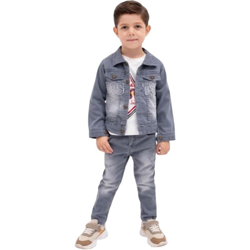 6000 toptan 5/8 yaş erkek çocuklar için çocuk kot ceket, pantolon ve tişörtlü üçlü takım