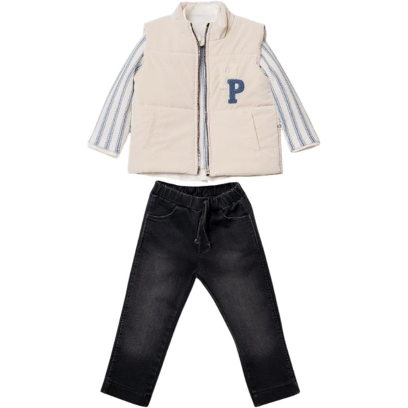 6098 toptan 2-5 yaş arası erkek çocuklar için kot pantolonlu mevsimlik üç parçalı takım elbise