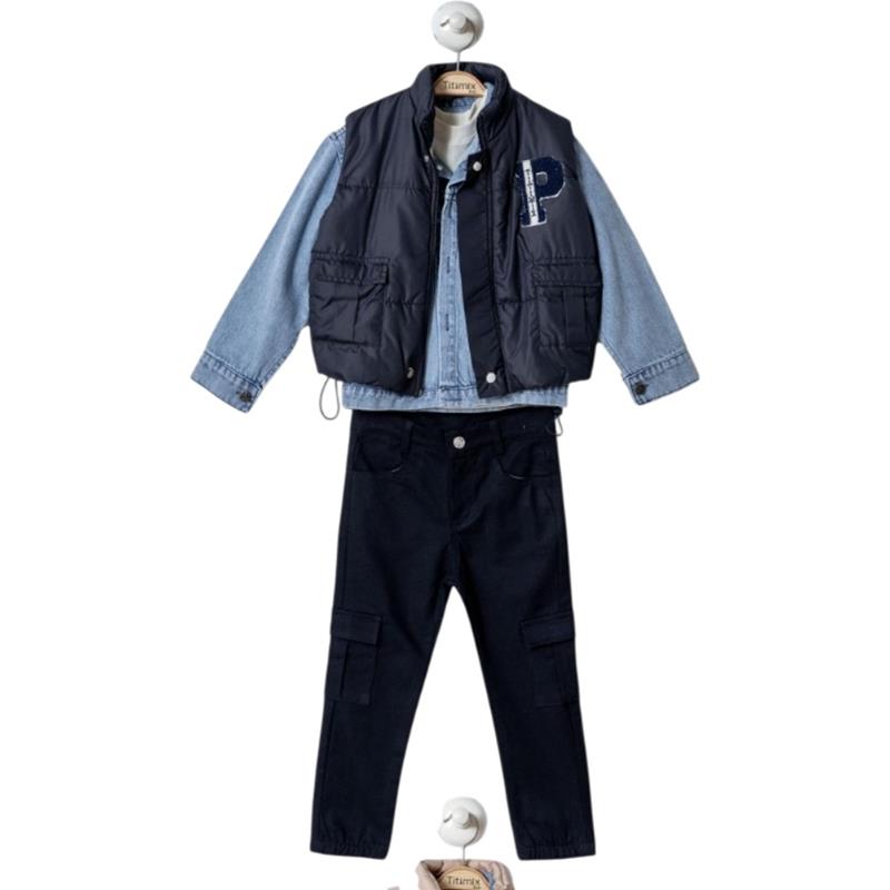 26637 toptan 5/8 yaş arası erkek çocuklar için kot pantolonlu dört parça mevsimlik takım elbise