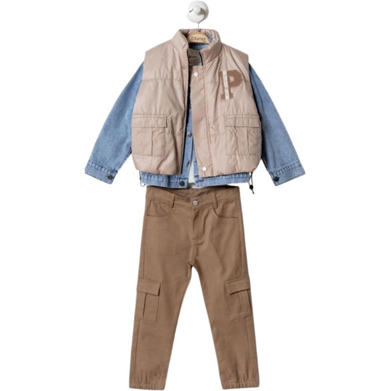 26094 toptan 6/9 yaş arası erkek çocuklar için kot pantolonlu üç parça mevsimlik takım elbise