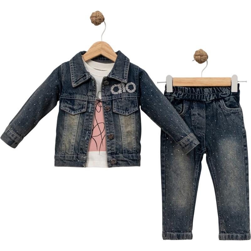 12269 toptan 3/6 yaş arası kız çocuklar için kot pantolonlu üçlü mevsimlik takım elbise