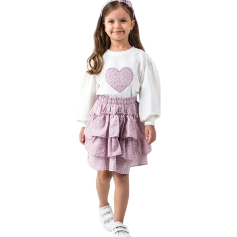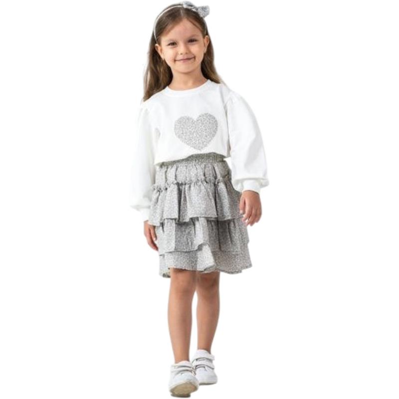 6341 toptan 2/5 yaş arası kız çocuklar için mevsimlik etekli tişörtlü iki parçalı takım elbise