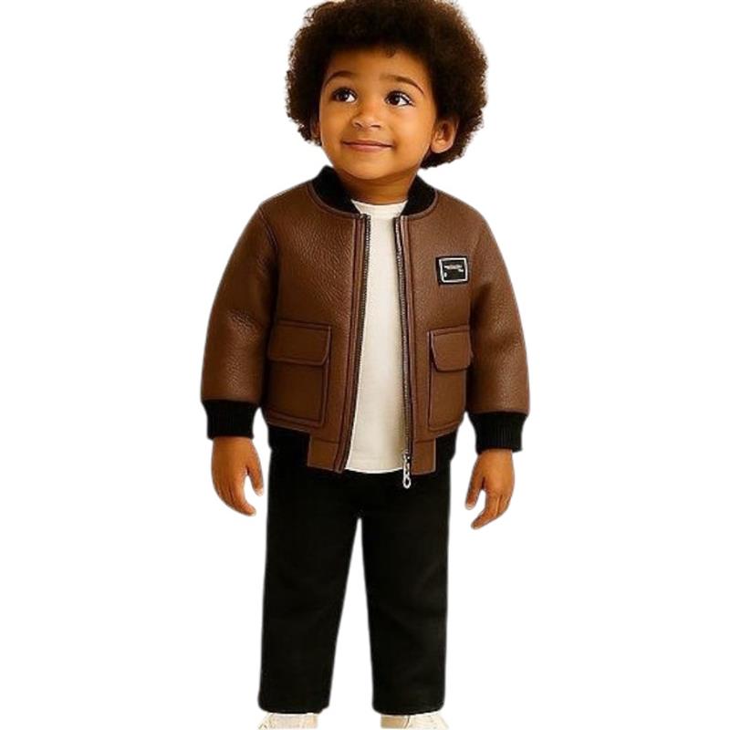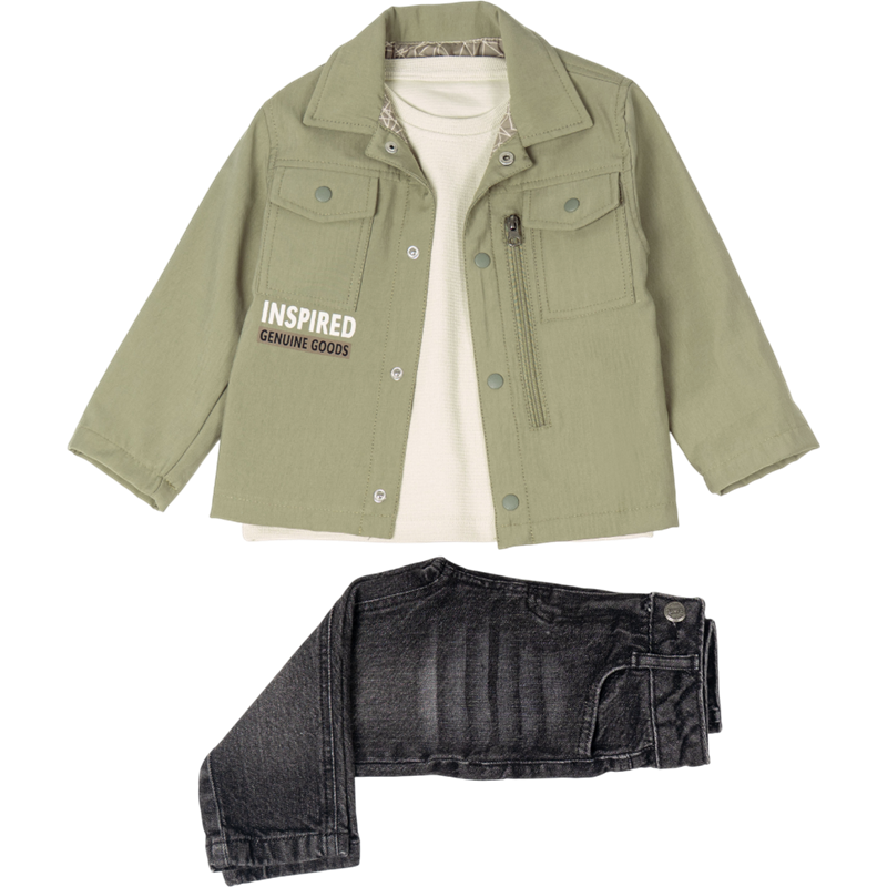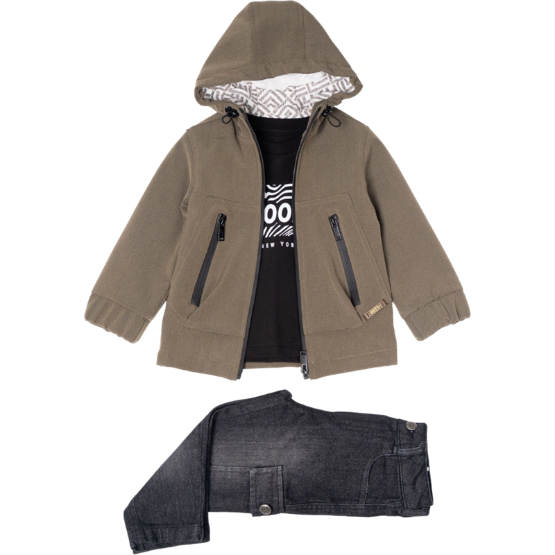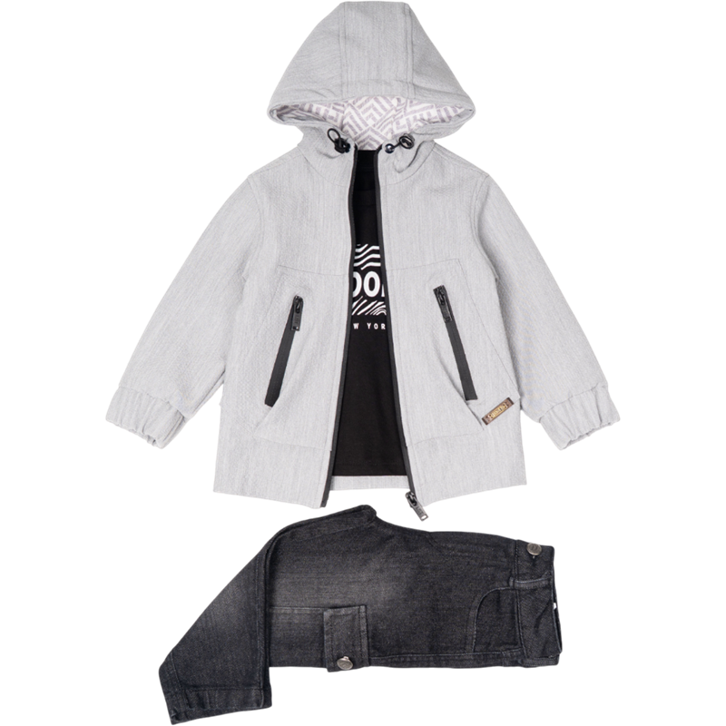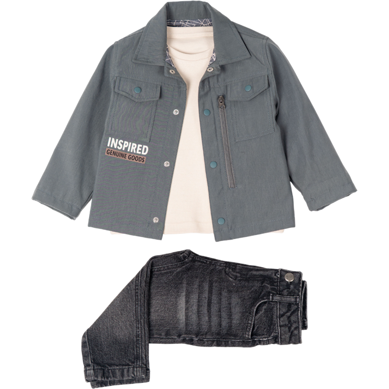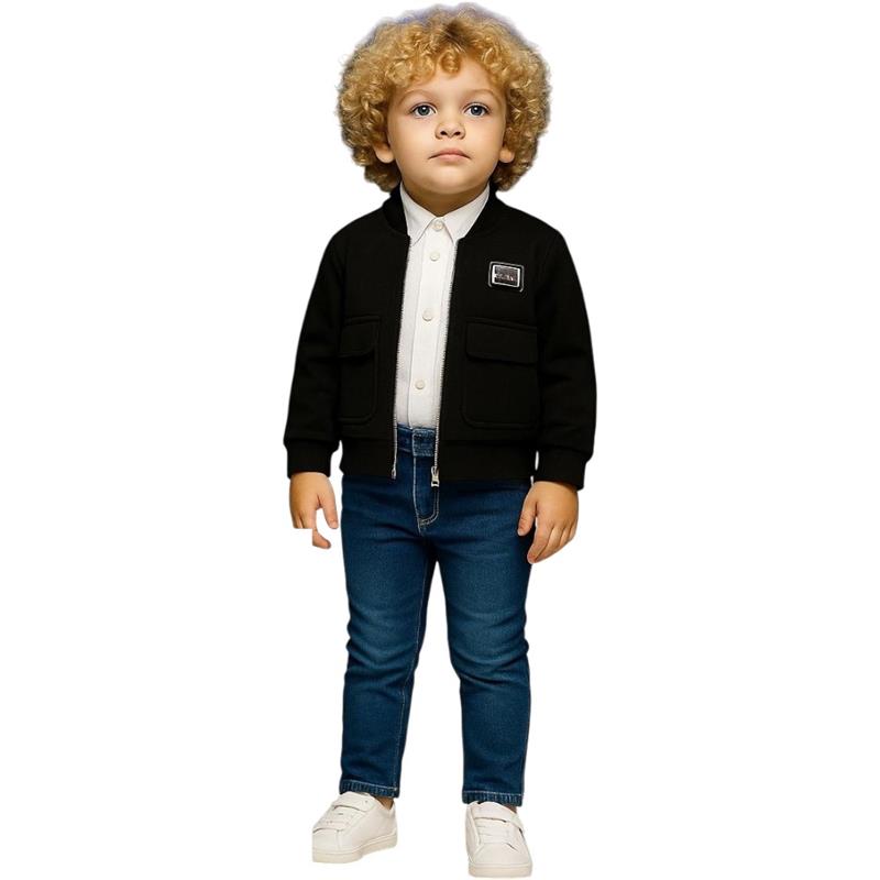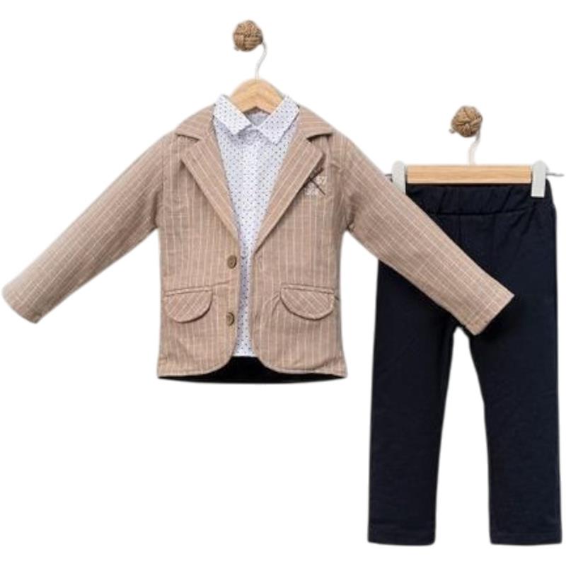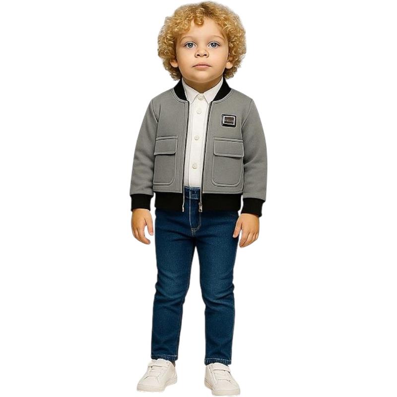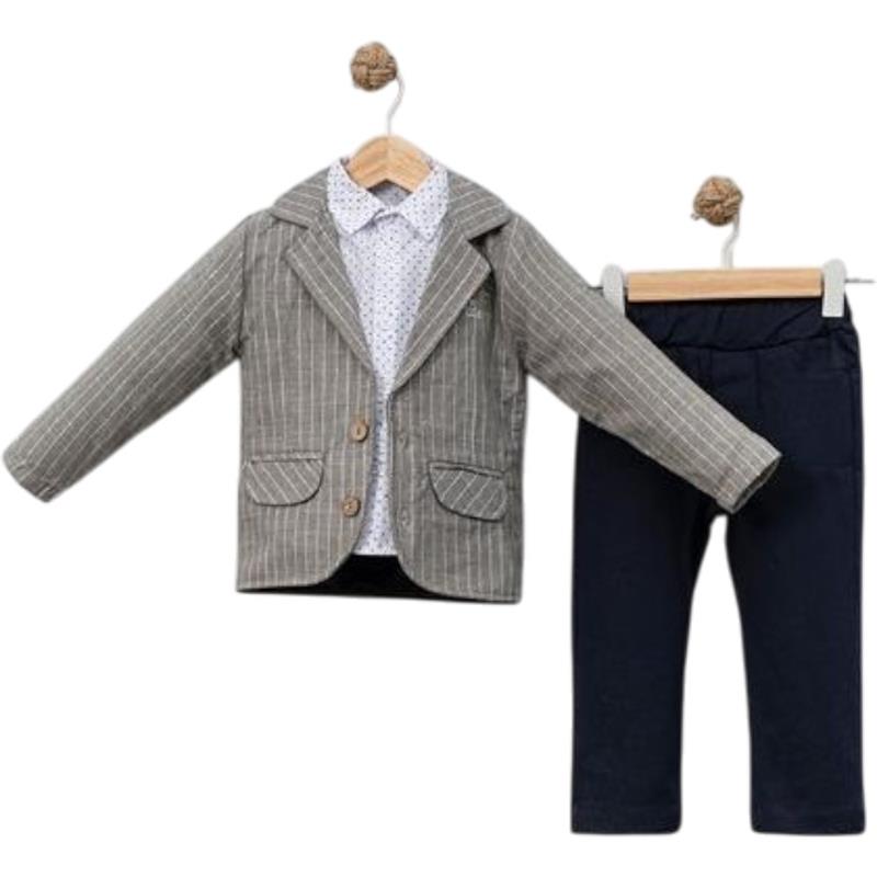 26109 toptan 2/5 yaş arası erkek çocuklar için ceketli ve kot pantolonlu üç parçalı mevsimlik takım elbise