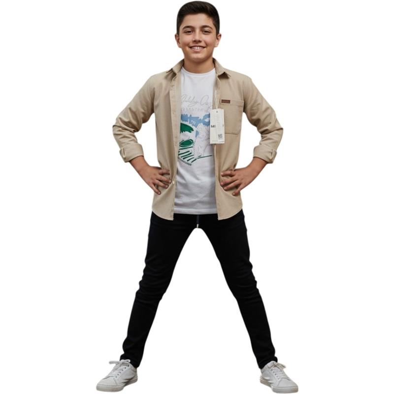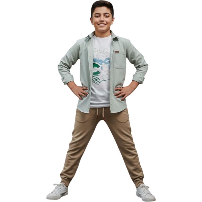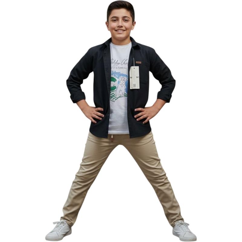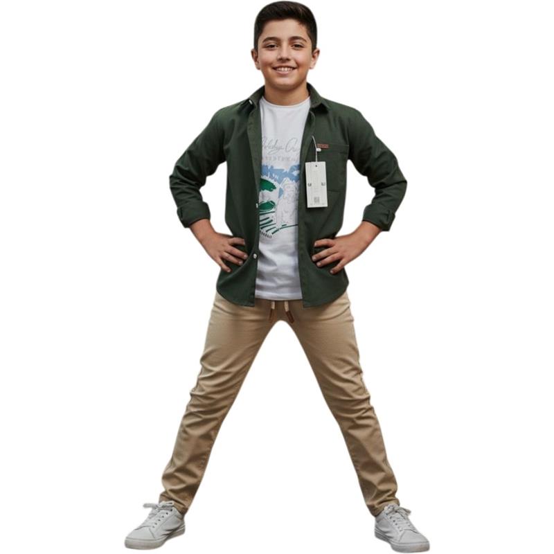 toptan 11/15 yaş arası çocuklar için gömlek, pantolonlu tişörtlü üç parçalı mevsimlik takım elbise