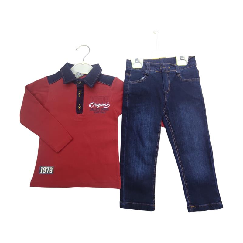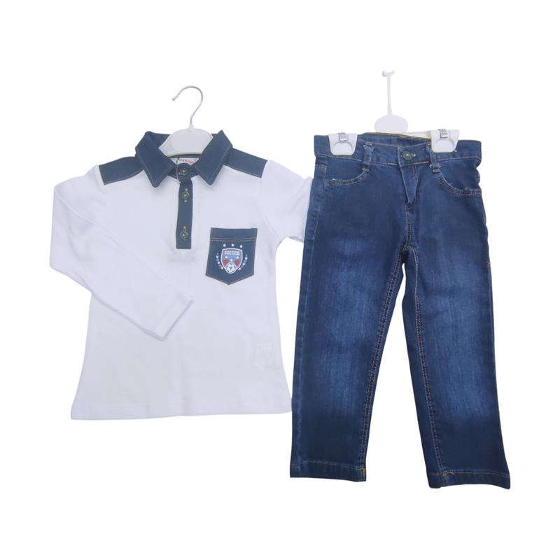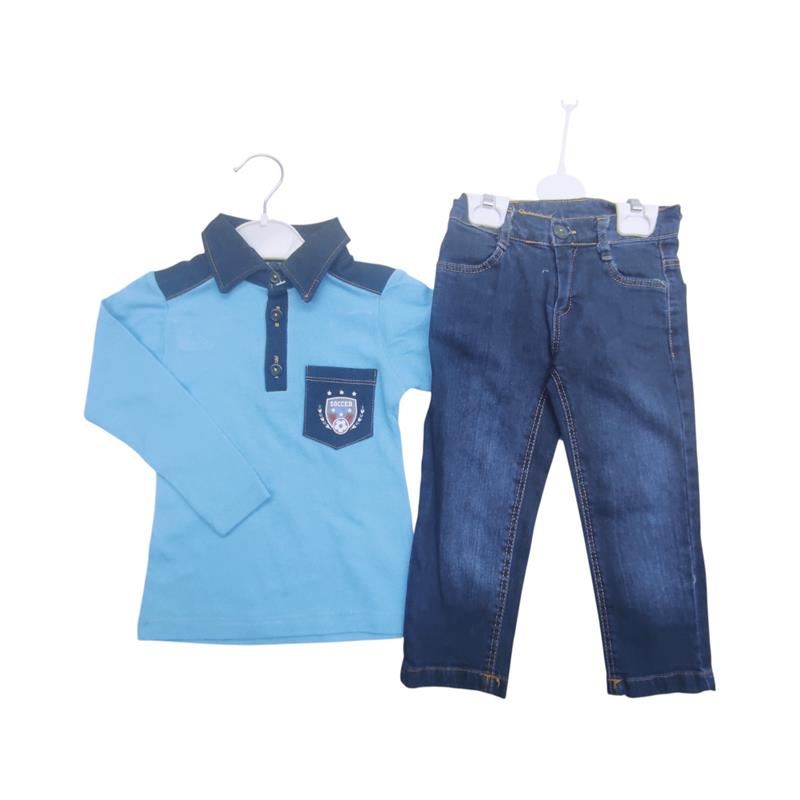 2773 toptan 2/5 yaşındaki erkek çocuklar için çocuk ilkbahar ve sonbahar kot pantolonlu polo yakalı tişörtler