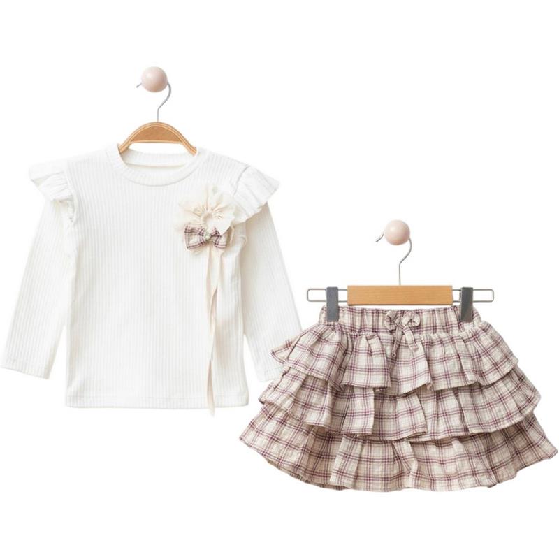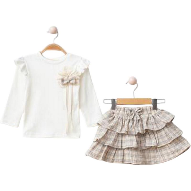 4127 toptan 2/5 yaş arası kızlar için çocuk mevsimlik etekli tişörtü takımlar