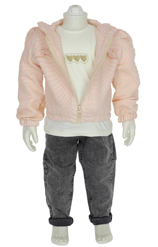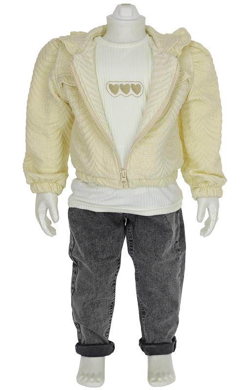 6069 kız elbise toptan gömlek + kot pantolon + kapşonlu lüks ceket 3/6 yaş