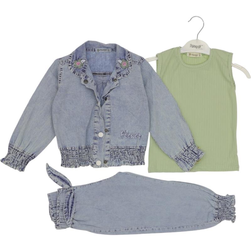 2188 kot ceket ve pantolon kız giyim toptan 2-5 yaş