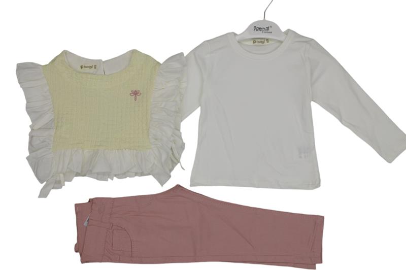 4405 kolları fırfırlı pembe pantolon kız takım 2/5 yaş