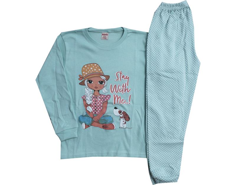 50295 toptan 10-11-12 yaş arası kız çocuklar için mevsimlik pijama takımı