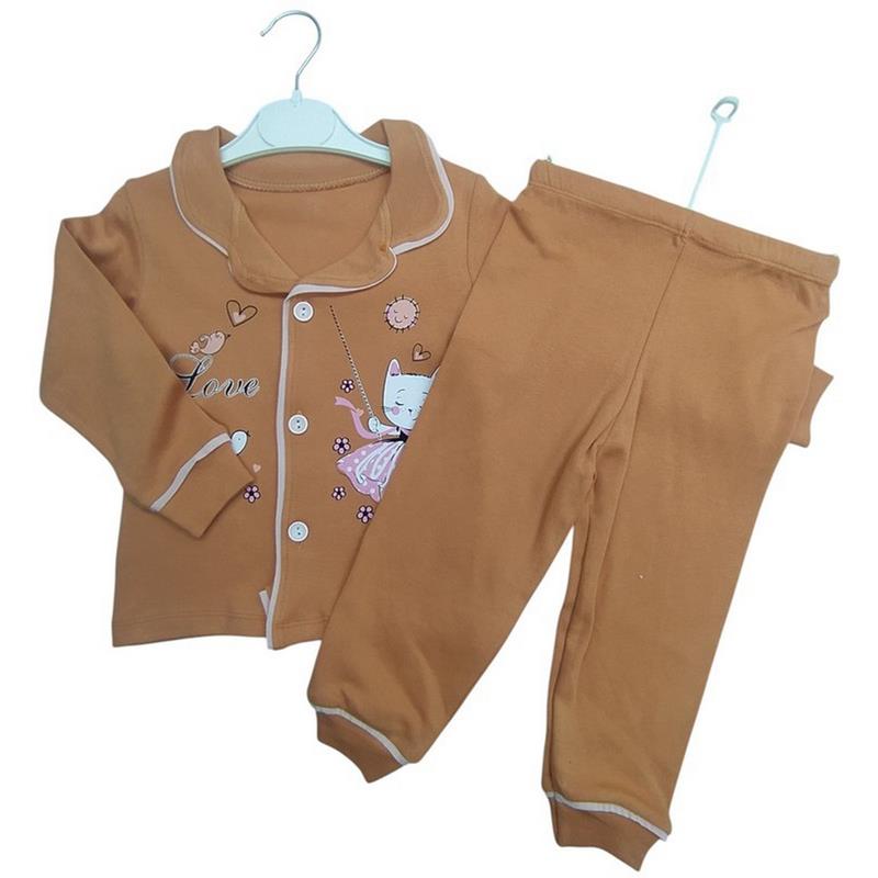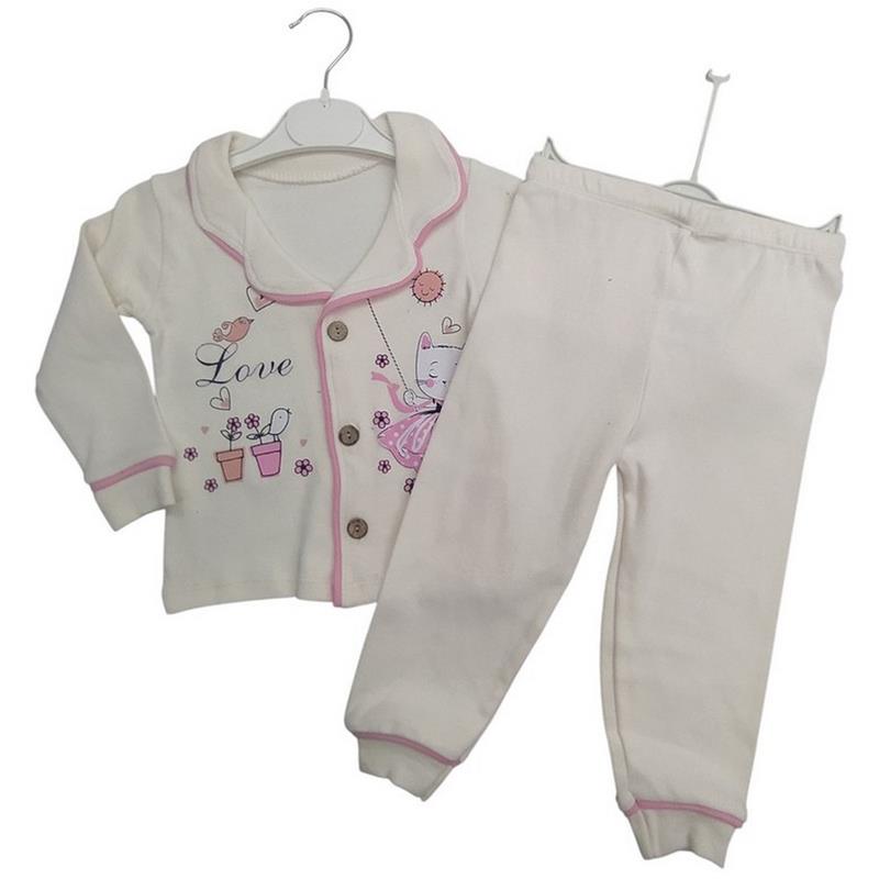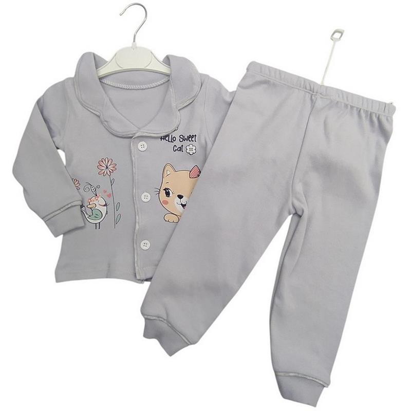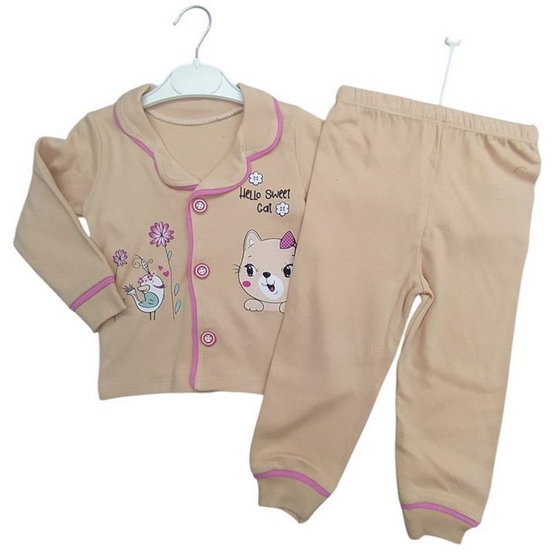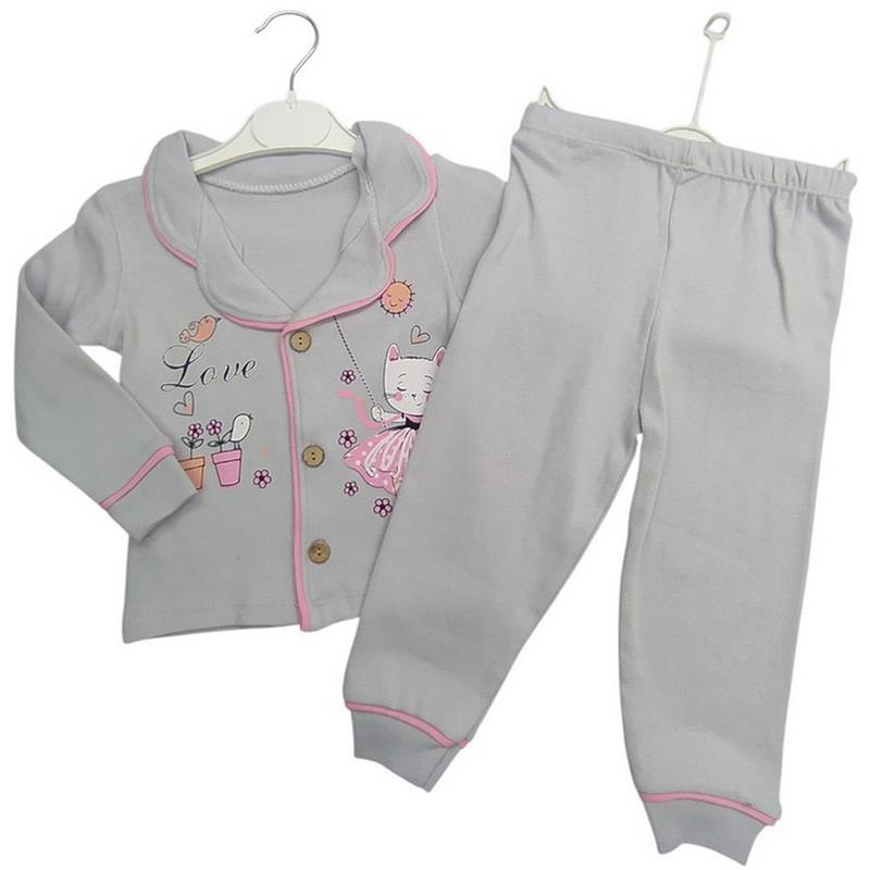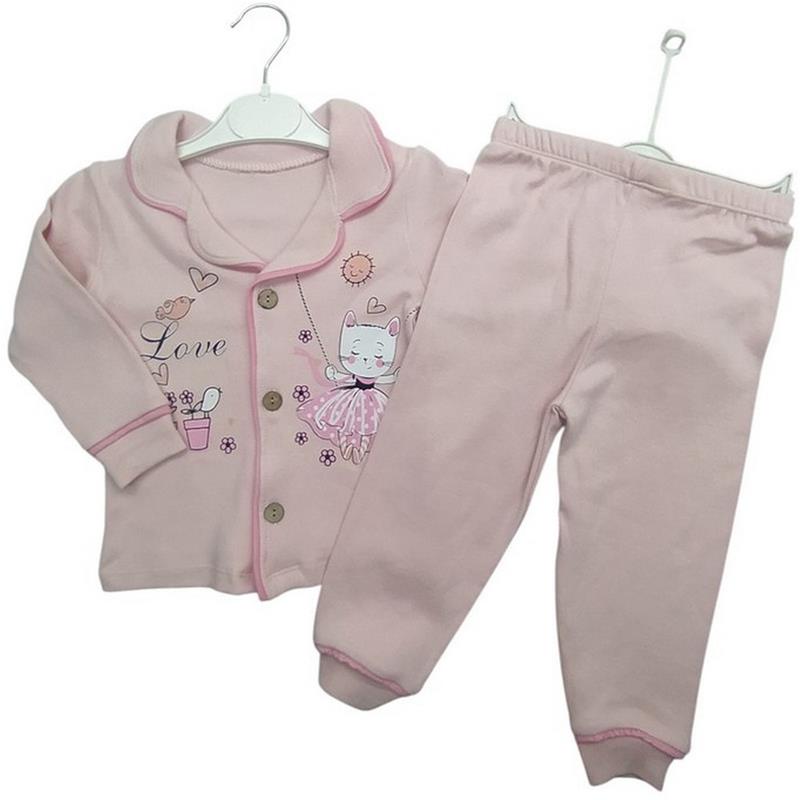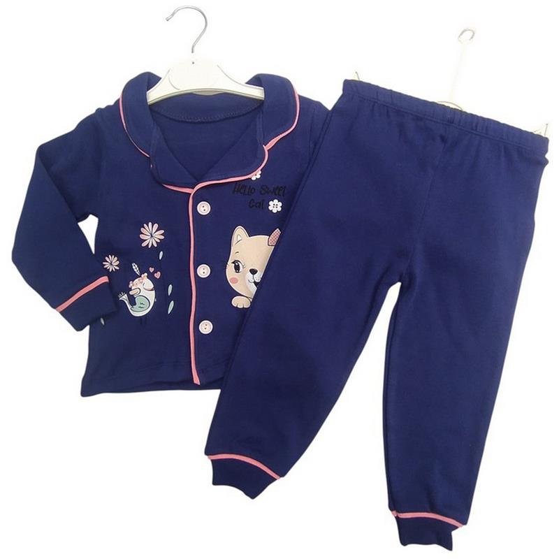 4014 toptan 1-2-3 yaş arası kız çocuklar için düğmeli mevsimlik pijamalar