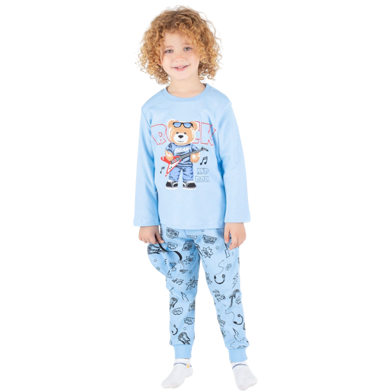 3060 toptan 3/6 yaş erkek çocuklar için gitarlı ayı baskılı pijama takımları