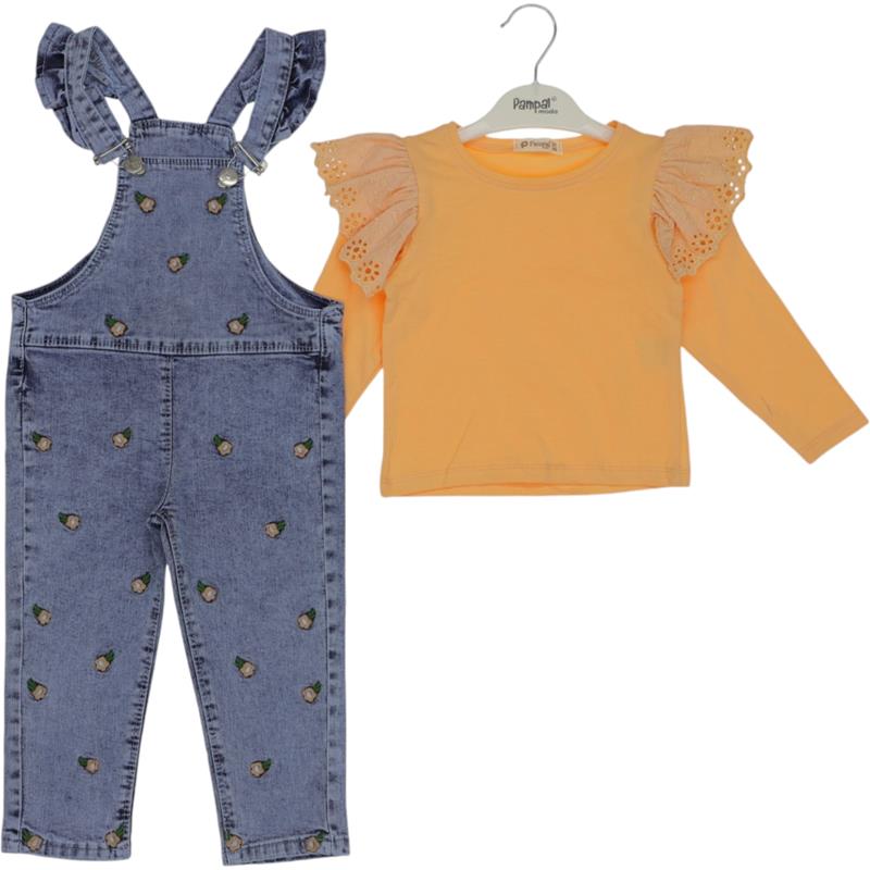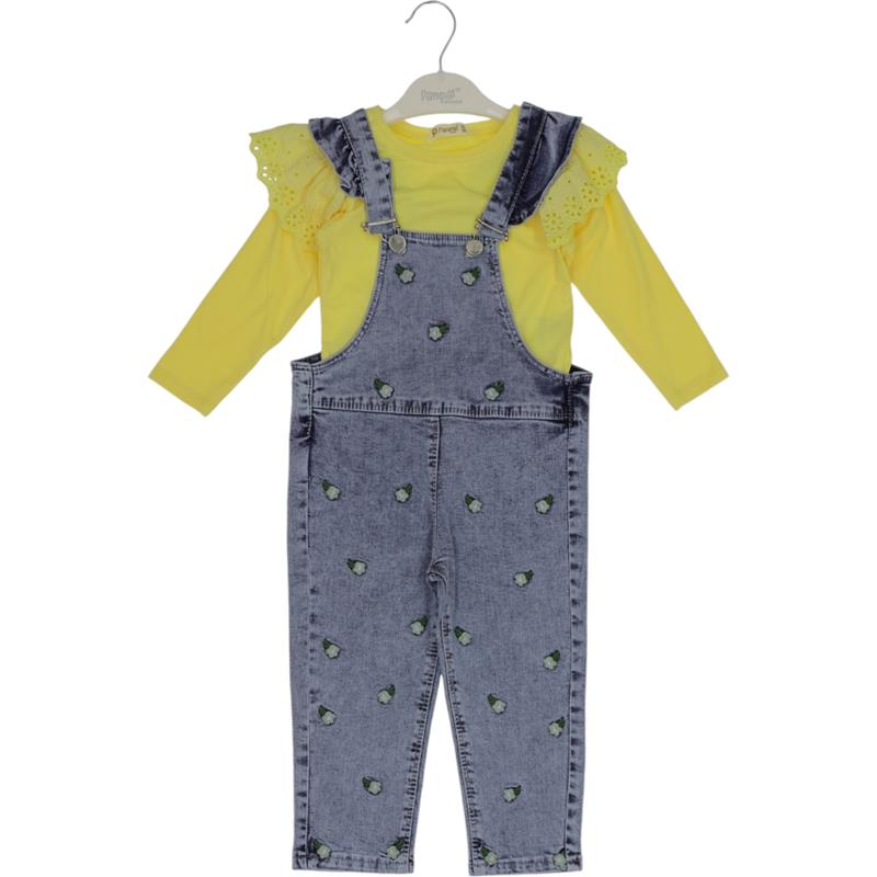 6238 Kız bahçıvan salopet takım kot giyim toptan 6/9 yaş