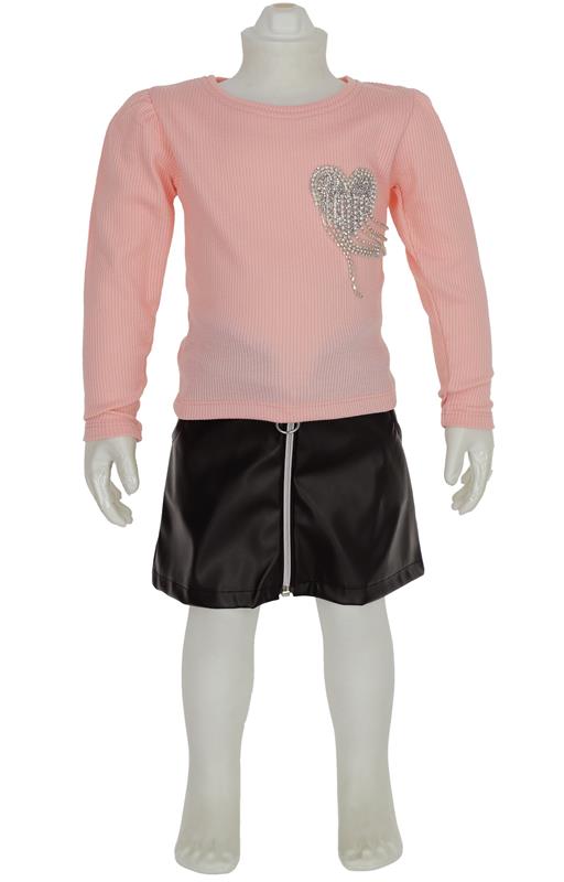 6234 deri etek kız çocuk takım toptan 6/9 yaş