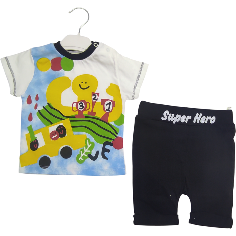 002 toptan 12-18-24 aylık erkek bebekler için tişörtü şortlu yazlık ikili takım