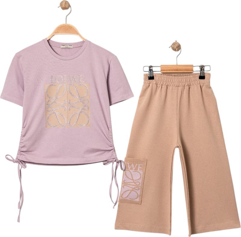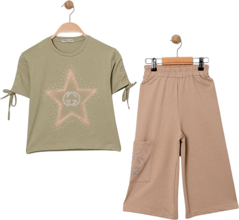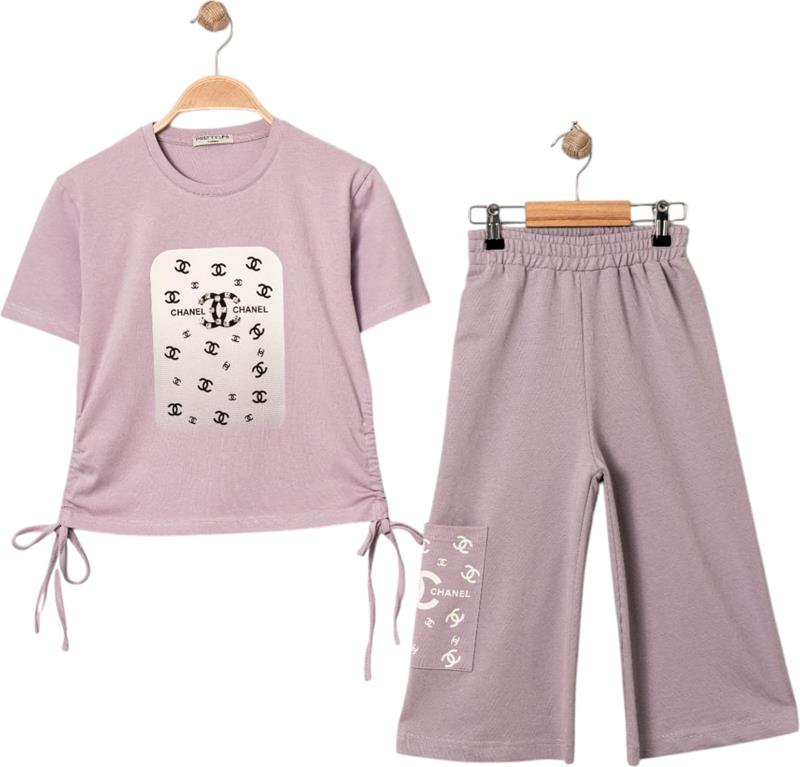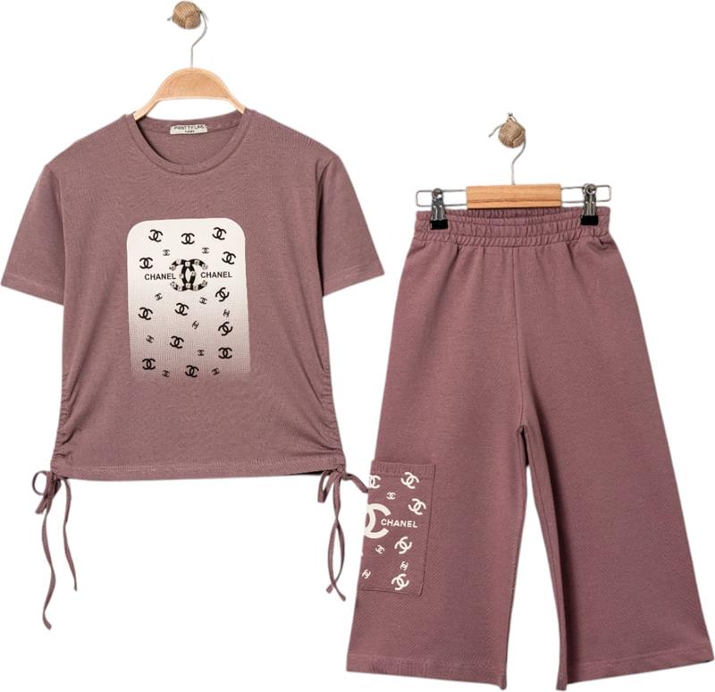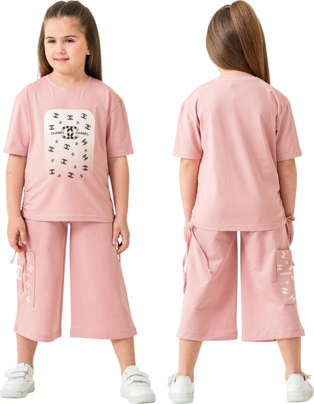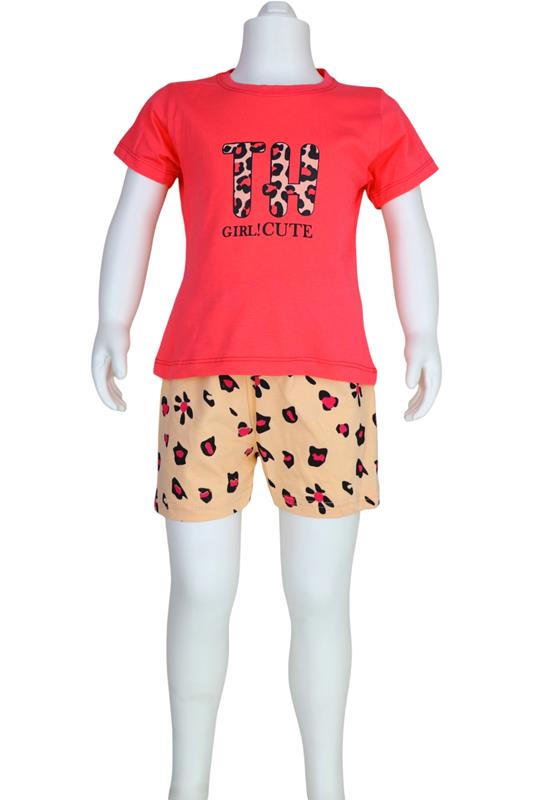 3/10 yaş arası kızlar için farklı baskılı toptan çocuk yazlık ikili takım