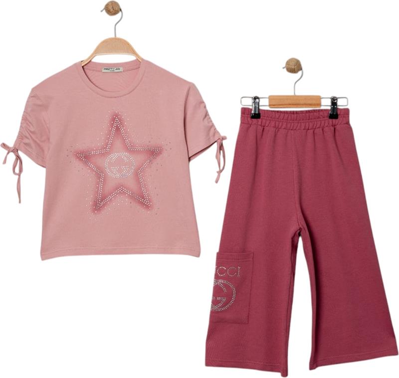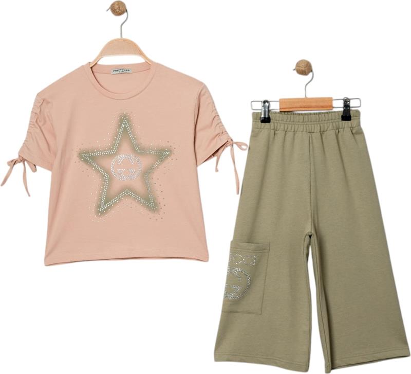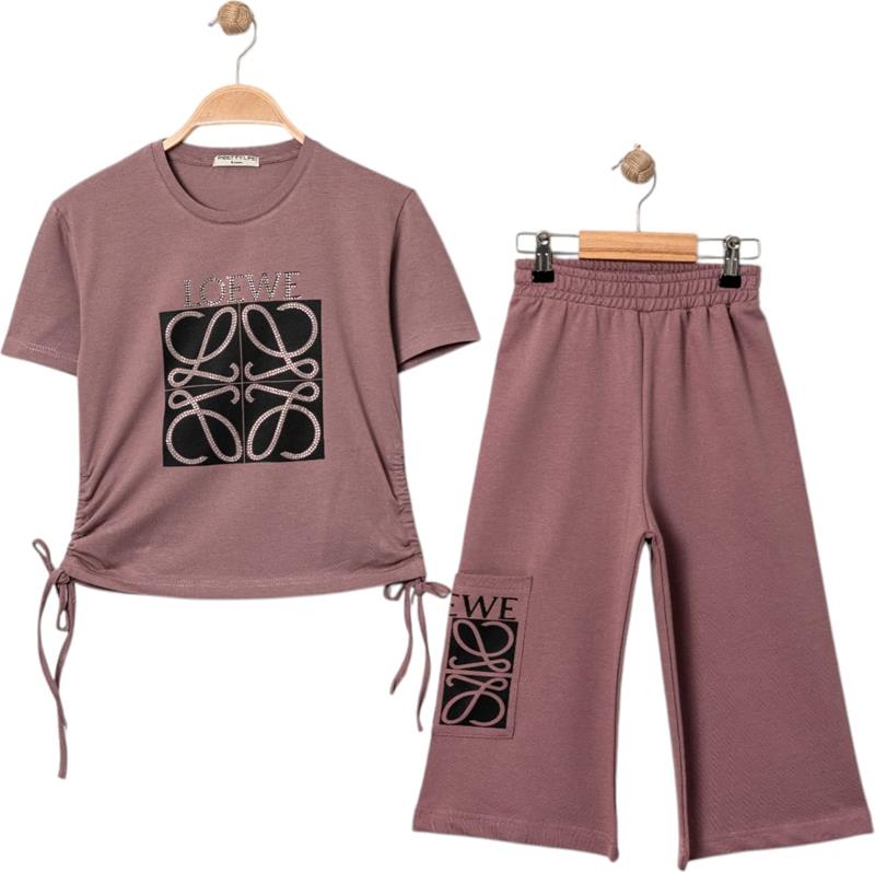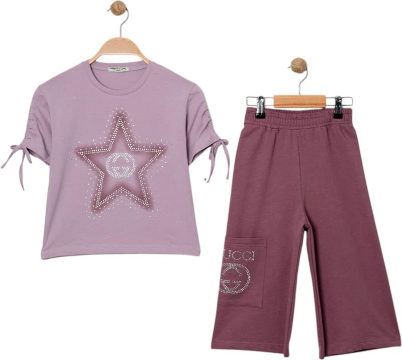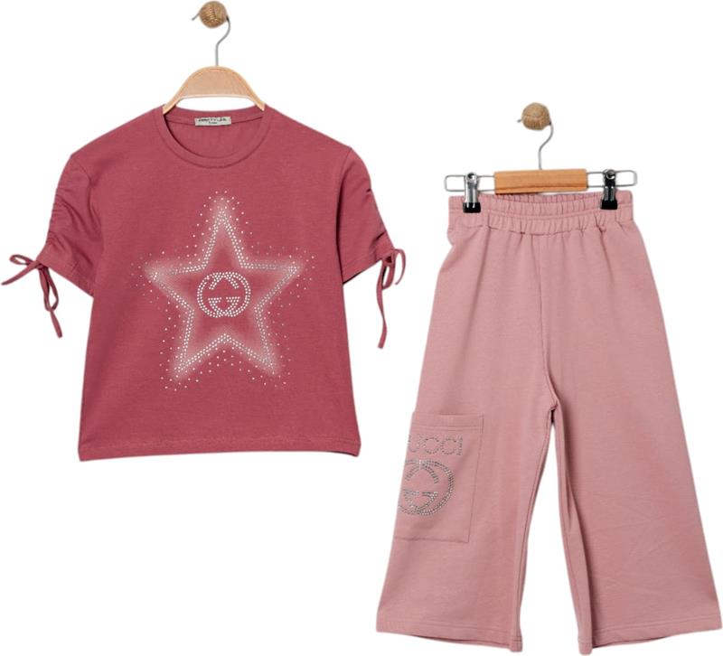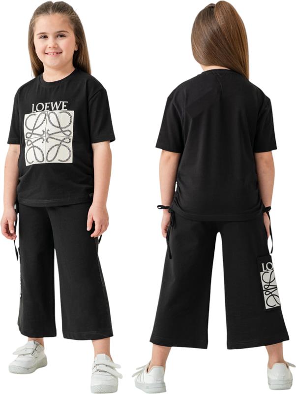 3/10 yaş arası kızlar için farklı baskılı toptan çocuk yazlık ikili takım
