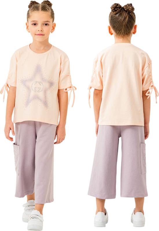 12140 toptan 5/8 yaş arası kız çocuklar için  tişörtlü pantolonlu ve çantalı yaz çocuk takım