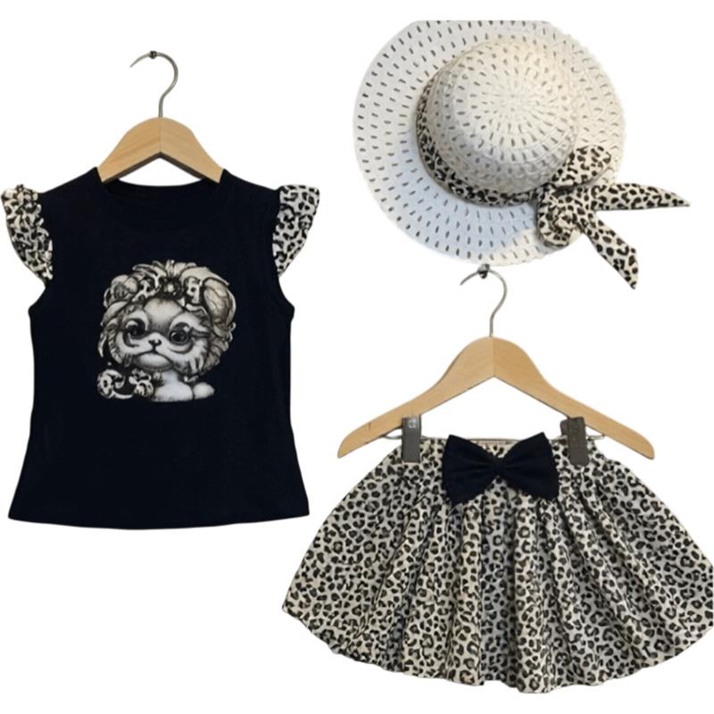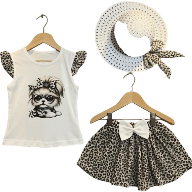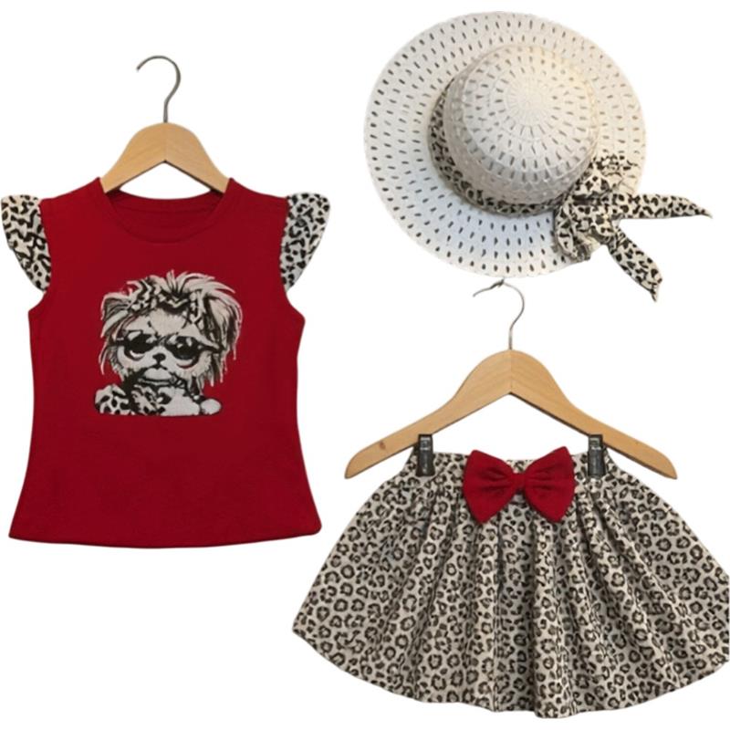 2135 toptan çocuk giyim ürünleri, 1-2-3-4 yaş arası kız çocuklar için yazlık badi, etek ve şapkalı üç parçalı takım