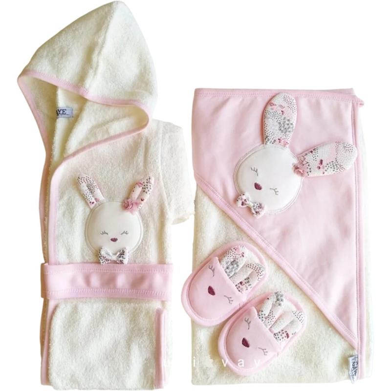 826 toptan 4 parça tavşanlı çocuk bornoz seti