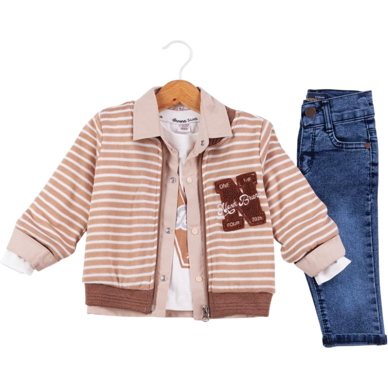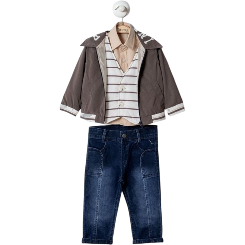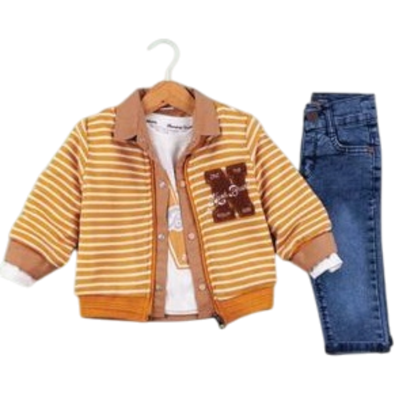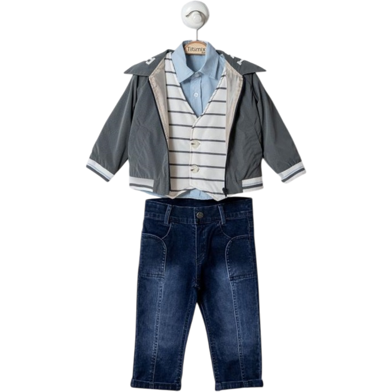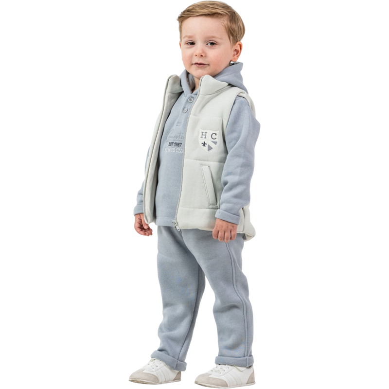 7055 toptan 2-3-4 yaş erkek çocuklar için yelekli mevsimlik üçlü takım elbise